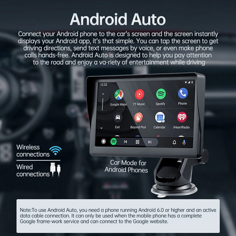Features: 【Wireless Apple CarPlay & Android Auto】This car multimedia monitor is compatible with wireless Apple Carplay, wireless Android Auto function. (It also can support Wired CarPlay & Wired Android Auto.) 【Wired Apple & Android Auto-Link】This car multimedia monitor is compatible with Apple & Android Wired Auto-Link. 【Voice Control】Uses your smartphones such as Hi, Siri / Hello Google assistant wirelessly to make calls and play your music without taking your eyes off the road. 【Rear View Camera】This monitor support reverse camera input function. That will help you have a safer parking. (The camera not included, if you want, you can buy one in our store) 【FM Voice Transmit】Our multimedia monitor have a small speaker. If you want to enjoy your original car audio, you can use FM Transmit function to launch voice signal to your original car radio. 【USB, TF Card, Bluetooth】This car multimedia monitor can support USB disk, TF card music, video playback. It also can supprot Bluetooth music & handsfree call. 【HD Touch Screen】7 inch screen car stereo with 1024x600 HD IPS screen, support 1080P video playback. Enjoy the features such as maps, movies and more. 【Simple Installation】This car multimedia monitor with the suction mount secures intellidash to your dashboard or windshield and can be easily removed and stored. 【Compatible with 99% vehicle】Our multimedia monitor work voltage is 12-24V. Truck, bus, van, car, both vehicle can be used. It can let everyone enjoy CarPlay & Android Auto. Specification: Model: YT-B5300A OS: Linux Screen size: 7 inches Screen resolution: 1024x600 Radio Transmit frequency: FM 93.0~108.0MHz Output power: built-in 1W speaker Working voltage: 12~24V Working temperature: -10~+60℃ Bluetooth version: 5.0 (default name: CarPlay) Shell size: 188x110mm/7.08x4.33" Phone screen mirroring: support Steering wheel control: not supported Video output: not supported Offline maps: not supported Dashcam input: not supported Built-in speaker: yes USB port: USB 2.0 TF card: support Reversing video input: support Audio format: MP3/AAC/APE/OGG/M4A/RA/WAV Video format: H263/H264/H265/DIVX HD/AVI/FLV/MKV/MPEG/MP4/WMV9/VC/ASF/TS/QT Image format: JPEG/PNG/BMP/GIF/TIFF Package Included: 1 x Car Multimedia Monitor 1 x Power Cable 1 x User Manual 1 x Monitor Suction Cup Gasket 1 x AUX Cable 1 x Packaging Box Payment 1. We only accept payment via PayPal, other payment is not acceptable. 2. Please make sure your shipping address is the same of your PayPal address before you pay. Shipping 1. We ship to Worldwide,e xcluded some far away places. 2. We only ship to confirmed PAYPAL address; your PAYPAL address must match your Shipping address. 3. Any non-received items caused by invalid address registered on PayPal are not in our full refund or replacement policy. Shipping fee has including the local handing and packaging fee. 4. All the items will be shipping within 1-2 working days after receiving the payment, except some holidays. 5. When the shipping method is express delivery, some areas need to pay remote fees to the courier company. Taxes, Customs & Duties 1. Some countries are required to collect customs duties. Please confirm your local customs duties before placing orders. 2. We will not be responsible for any custom delay or tax, because transit time is highly depended and provided by postal Service. Returns 1. If you have not satisfied as you received the item, please return it within 30 days for a replacement or money back. Please contact us before you return it. 2. All returned items must be in the original packaging with all components and accessories included, and you must provide us the return shipping information (The shipment or the tracking number) 3. Return shipping fee is to be paid by the buyers. We will not be responsible for any custom duty or import tax. Warranty 1.One Year Manufacturer's Warranty for defective items (excluding items damaged and/or misused after receipt). 2.Defective items must be reported and returned to us within the warranty period (and in the original packaging, if possible). You must tell us what the defect is and give us your eBay ID. We do not repair or replace items with an expired warranty. Feedback