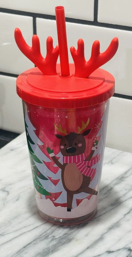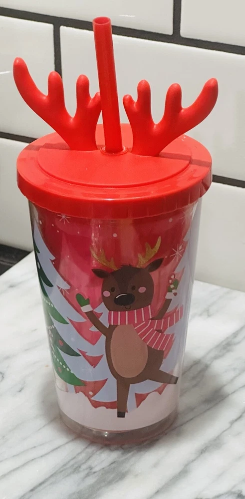 The product is a Portable Straw Cup designed in an Elk shape, making it a festive and fun option for Christmas. It has a capacity of 500 ml and is suitable for holding cold beverages. The cup is made of plastic material and comes with a lid, making it convenient for travel. Perfect for adults, this Container Lid cup is reusable and ideal for on-the-go use during the holiday season.