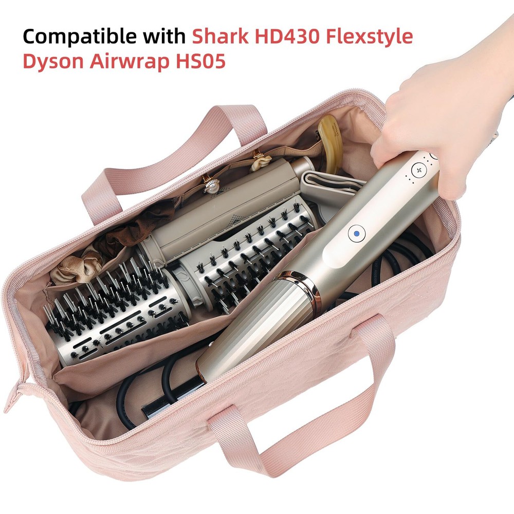 NISHEL Hair Tools Travel Carrying Bag, Portable Hair Air Wrap Dryer Case, Curling Iron, Airstraight Attachment Organizer, Hairdressing Set, Pink DESIGN FOR HAIR STYER AND ATTACHMENTS: 13.75*5.9*5.5 inch, Specially for Shark HD430 FlexStyle, and compatible with Dyson Airwrap HS05, and can also accommodate hair dryers of similar sizes WIDE OPENING: Allows you access to things quickly. The stiff wire design at the opening allows the bag to maintain a large opening without shrinking inward when opened PARTITION DESIGN: Prevent hair curler wand and hair dryer set from bumps, scratches, and other physical damage SMALL POCKET & ELASTIC BAND: Keep your small hair accessories organized EASY PORTABILITY: The double handle strap makes it easy to travel and carry. It is very convenient whether it is hung on the arm or carried in the hand SHIPPING Domestic Buyers - We have confidence in our products, but if you are not fully satisfied please contact us within 30 days of purchase and you will get full refund. - We ship within 3 business days of payment, usually sooner - We offer FREE shipping on all orders! - We only ship to the lower 48 states, no APO/FPO addresses or PO Boxes allowed International buyers – please note: Import duties, taxes, and charges aren't included in the item price or postage cost. These charges are the buyer's responsibility. - Please check with your country's customs office to determine what these additional costs will be prior to bidding or buying. * Order Cancellation Policy ** You can return a product for up to 30 days from the date you purchased it. 1. The seller reserves the right to cancel the special case only due to eBay cancellation fee. 2. The decision of seller is the final. 3. The seller will respond to the cancellation request within 2 business days. Please wait for the result of cancellation. 4. In case the cancellation is not completed by some reasons, the buyer can follow the options below to get the refund. 4.1 The buyer can reject the item when it arrives. 4.2 The buyer can send the item back to the seller within 30 days If the buyer receives item (USA Shipment ONLY). The seller will provide the FREE return label to the buyer when the buyer opens " Return Item" case on eBay by using the reason as "Change my mind" ONLY. 5. When buyer has placed the order. The order will be processed and completed by automatic warehouse system within 5 minutes. In case that buyer sends the cancellation request after 5 minutes of placing the order, the request will be rejected. **Sending direct message to cancel the order is not allowed for every case.* Return Policy For the return case - If buyer would like to return the items for refund or replacement, please CONTACT SELLER to receive the free return label from seller. The refund or replacement will be processed with the tracking number of return label which is provided by seller only. The other ways of return which are not approved by seller will not be processed for the refund or replacement.