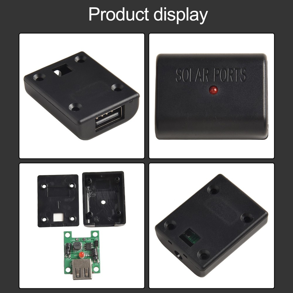 Convenient USB Output Solar Power Bank Voltage Regulator for Easy Charging DESCRIPTION Features: *Wide input voltage range: This solar panel power bank charge voltage controller regulator step down module supports a wide input voltage range of 5-22V, allowing it to stably output a 5V DC voltage, making it compatible with various solar folding bags and solar chargers. *High output current: With an output current of up to 2A, this module can deliver a fast and efficient charging experience for your digital devices. *High conversion efficiency: Featuring a high conversion efficiency of up to 95%, this voltage regulator ensures that the power from the solar panel is effectively converted into usable energy for your devices. *Industrial temperature range: Designed to withstand harsh environmental conditions, this module has an industrial temperature range of -40℃ to +85℃, reliable performance even in extreme temperatures. *USB female output: Equipped with a single USB interface, this module allows you to conveniently charge 5V digital products. Specifications: *Part Name:Solar panel stabilizer *Material:Plastic shell *Size:50*50*20 mm *Color:Black Package Content: * Solar panel stabilizer Note: . The real color of the item may be slightly different from the pictures shown on website caused by many factors such as brightness of your monitor and light brightness. 2. Please allow slight manual measurement deviation for the data. POLICES Shipping Payment WARRANTY We only ship to confirmed ebay Order addresses. Please comfirm that your Order address is in line with your shipping address. Please kindly note that the c ombined shipping is not provided because the shipping fee is calculated by weight. Also, the each additional item means exactly the the same color and size. It takes about 7 -15 working days to US; about 10-30 working days to other countries. Transit time may be a little delayed because of the bad weather and customs inspection . If you do not receive your item within 30 working days since payment finished, please contact us immediately for further assistance. Payment must be completed within 5 days. If you have any problems about payment, please contact us via ebay message. We strive for 100% customer satisfaction! Positive Feedback is very important to us. If you have any questions, p lease feel free to contact us via "Ask seller a question" . We will reply your email within 24 working hours.