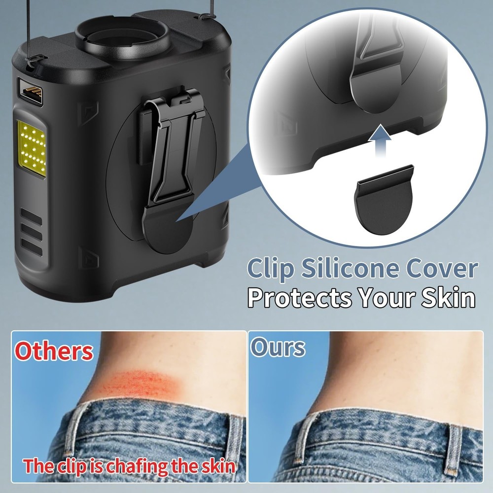 Free eBay listing template designed by dewiso.com Portable Waist Fan Clip On 10000mAh Wearable Belt Personal Fan Rechargeable Battery operated with 5 Speeds Wind and Light 40H Hands-Free for Cooling Outdoor Camping (Black) FREE AND FAST SHIPPING! About this item Ultra-Long Battery Life: EEIFO portable waist clip fan is equipped with 10,000mAh high-capacity battery, it fully charges in 4 hours. Depending on the selected wind speed level, it can operate continuously for 7 to 40 hours on a full charge, ensuring all-day use. Featuring a 5V-2A Type-C input and a 5V-2A USB output port, the rechargeable portable fan can also serve as an emergency power bank for charging phones and other devices. Super Strong Wind Power: Powered by a high-speed brushless motor with a maximum speed of 16,000 RPM, our waist fan clip on generates a strong airflow of 18mf/s, instantly dissipating heat. With five adjustable wind speed settings, this belt clip fan meets varying needs—from a gentle breeze to a powerful cooling wind—ensuring optimal comfort whether you're at work or outdoors. Multifunctional Waist Fan: A portable fan that integrates waist clip fan, desk fan, and neck fan into one, allowing for cooling anytime and anywhere. Additionally, this wearable fan features a built-in LED light for nighttime visibility and an SOS signal light function for emergency situations. Built for the Outdoors: Designed with a non-slip silicone cover, the under shirt fan is shockproof and impact-resistant. The robust manganese steel clip provides a strong grip, ensuring stability in all conditions. Whether you're a construction worker, courier, or outdoor enthusiast, this body fan helps you stay comfortable in high-temperature environments. Lightweight and Portable: Compact in size and weighing only 0.63lbs, the portable waist fan is effortless to wear and carry. Whether for daily commuting, outdoor activities, or travel, this cooling fan ensures refreshing airflow anytime, keeping you cool and comfortable in any situation. Product We offer a 30-Day Return Policy on items which you are not completely satisfied with. You have the option for a full-refund or an exchange of the item. No returns are available on items shipped outside of the US . Shipping We offer Free Shipping to the US and ship within 2 business days of payment, usually sooner. We use UPS express shipping. That's why your products are usually delivered within 3 days . Contact We try our very best to make sure every customer is completely satisfied. If there's a problem , message us! We're happy to help. 24/7 live chat available.