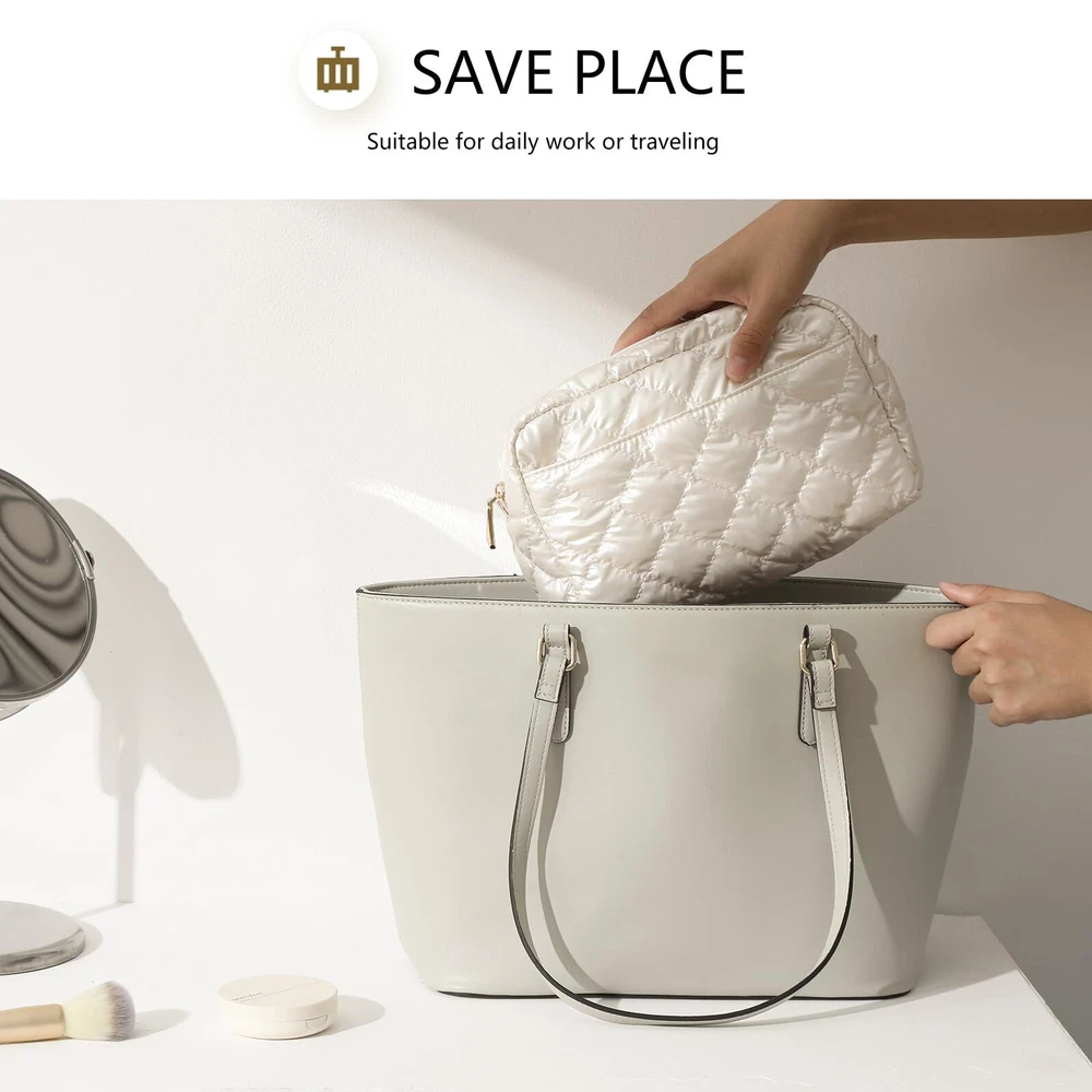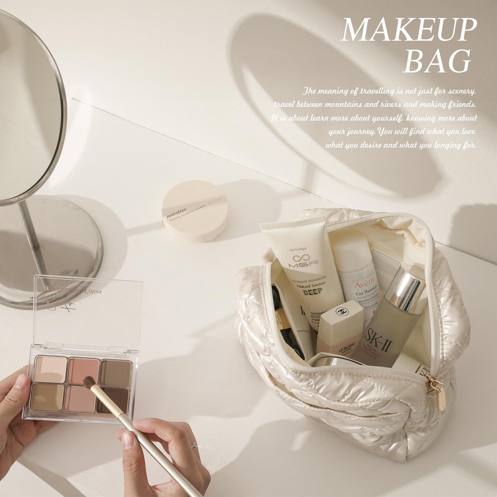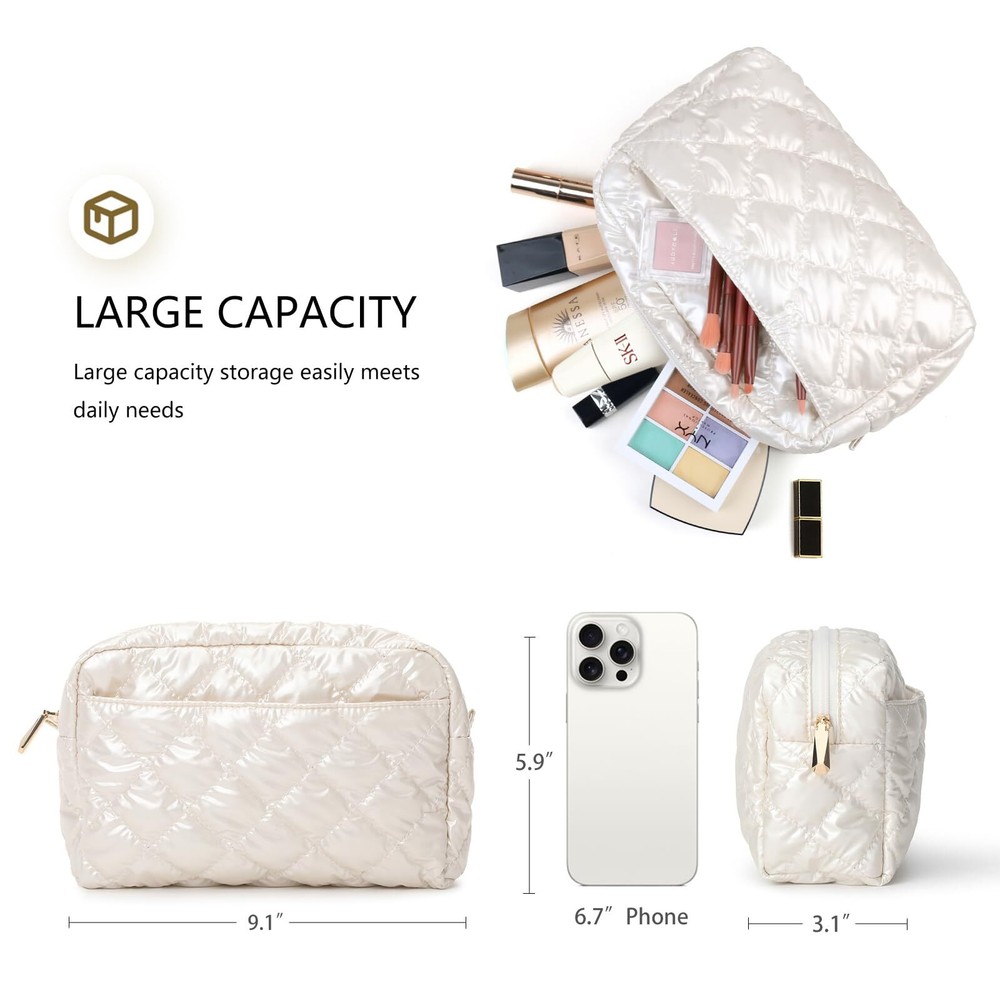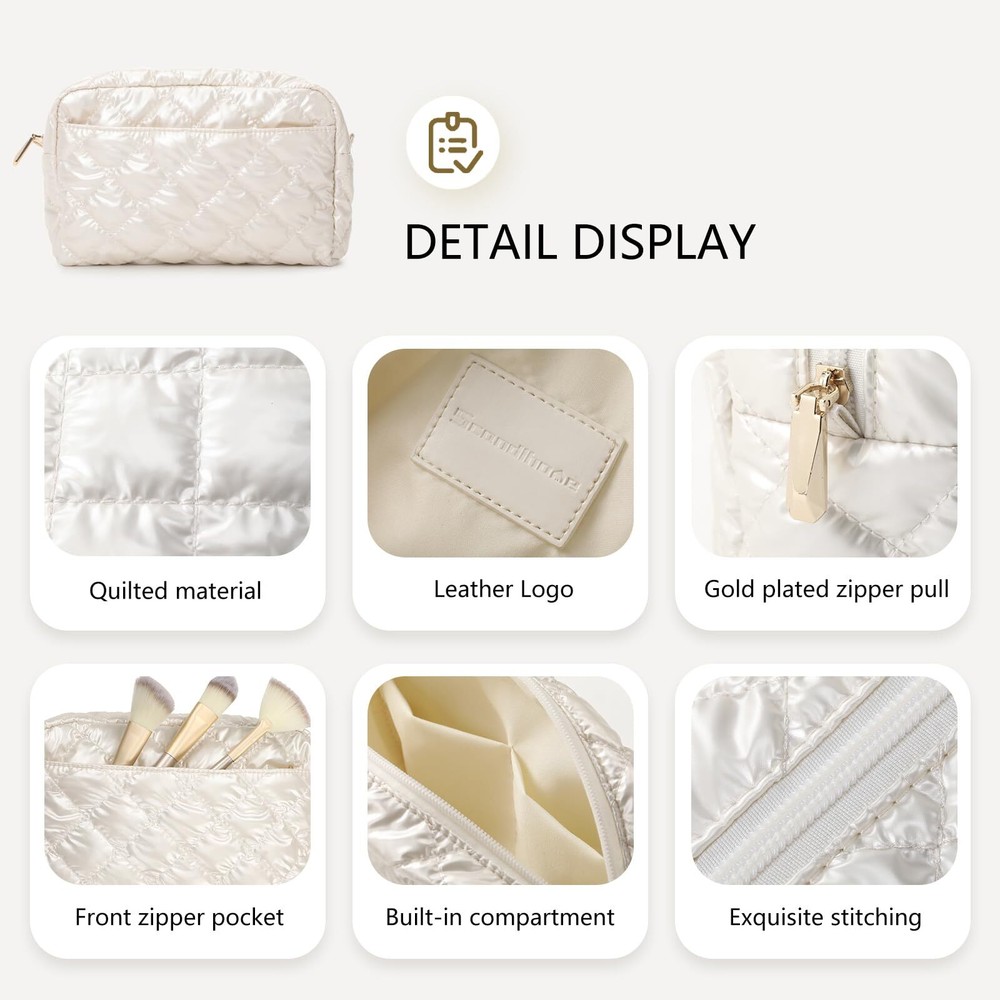 BBCREAT Travel Cosmetic Bag, Portable Waterproof Makeup Bag with Zipper Quilted Make Up Organizer Pouch Puffer Toiletry Bag Classy Gift for Women Daily Travel Use (White) ✅INTUITIVE DESIGN, LIMITLESS STYLE: The quilted make up bag is designed with multiple compartments, secure zipper closure, and front zipper pocket to hold full-size cosmetics, makeup tools, toiletries, and more, keeping items organized and enhancing your daily beauty experience. ✅WATERPROOF AND EASY TO CLEAN: This quilted makeup bag features a high-quality waterproof nylon exterior to ensure your beauty investment stays safe, dry. Durable and easy to clean fabric, just wipe with a soft cloth and water to make this bag look shiny like new. ✅PLUSH PERFECTION IN EVERY TOUCH: Luxuriate in the down-like softness of our interlayer, and our travel cosmetic bag are expertly sewn to feel as stunning as they look – because you deserve the best. ✅EXPANDABLE ELEGANCE ANYWHERE, ANYTIME: Light as air and rollable to a ball, the make up bags for women bounces back to its original chic shape, guaranteeing you sophistication wherever your journey takes you. ✅VERSATILE CHARM: The womens makeup bag size is 9.1*5.9*3.1 inches, perfect for women who desire to easily organize their skin care products. It is not just a cosmetic bag, it can also be a travel makeup bag, pouch for purse organizer, a tech accessories bag, travel accessories bag. SHIPPING Domestic Buyers - We have confidence in our products, but if you are not fully satisfied please contact us within 30 days of purchase and you will get full refund. - We ship within 3 business days of payment, usually sooner - We offer FREE shipping on all orders! - We only ship to the lower 48 states, no APO/FPO addresses or PO Boxes allowed International buyers – please note: Import duties, taxes, and charges aren't included in the item price or postage cost. These charges are the buyer's responsibility. - Please check with your country's customs office to determine what these additional costs will be prior to bidding or buying. * Order Cancellation Policy ** You can return a product for up to 30 days from the date you purchased it. 1. The seller reserves the right to cancel the special case only due to eBay cancellation fee. 2. The decision of seller is the final. 3. The seller will respond to the cancellation request within 2 business days. Please wait for the result of cancellation. 4. In case the cancellation is not completed by some reasons, the buyer can follow the options below to get the refund. 4.1 The buyer can reject the item when it arrives. 4.2 The buyer can send the item back to the seller within 30 days If the buyer receives item (USA Shipment ONLY). The seller will provide the FREE return label to the buyer when the buyer opens " Return Item" case on eBay by using the reason as "Change my mind" ONLY. 5. When buyer has placed the order. The order will be processed and completed by automatic warehouse system within 5 minutes. In case that buyer sends the cancellation request after 5 minutes of placing the order, the request will be rejected. **Sending direct message to cancel the order is not allowed for every case.* Return Policy For the return case - If buyer would like to return the items for refund or replacement, please CONTACT SELLER to receive the free return label from seller. The refund or replacement will be processed with the tracking number of return label which is provided by seller only. The other ways of return which are not approved by seller will not be processed for the refund or replacement.