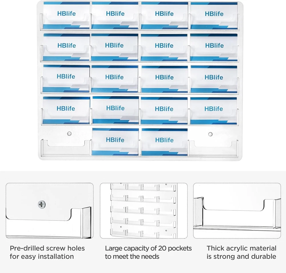 Durable Wall-Mounted Business Card Holder with 20 Slots for Easy Access ‹ › ‹ › ‹ › ‹ › ‹ › ‹ › ‹ › ‹ › ‹ › Durable Wall-Mounted Business Card Holder Featuring 20 Slots for Easy Access , this elegant display unit is your key to showcasing professionalism with style. Key Features: Perfect Design: Designed to beautifully showcase and organize multiple business cards, gift cards, and brochures. Durable and High-Quality Acrylic: Crafted from clear acrylic for its visual appeal, offering a reliable display that won’t easily break or crack. Optimal Size: Each individual card pocket measures 3.7" × 1.2" × 1", providing ample space for your cards and brochures, perfectly suited for any office, reception area, or trade show. Ease of Organization: Multiple pockets allow for simple organization and quick access to essential cards and promotional materials, streamlining your networking and marketing efforts. Versatile and Professional: Ideal for business professionals, entrepreneurs, or salespersons, this clear acrylic holder enhances professionalism while being capable of displaying other items such as gift cards and brochures. Why Choose Our Business Card Holder? Are you looking to make a lasting impression in your professional environment? Our Durable Wall-Mounted Business Card Holder elevates your workspace while keeping your contact information organized and readily accessible. With its robust construction and elegant design, this card holder ensures that your promotional materials are always showcased in the best light. Transform your networking efforts with this stylish organizational tool—order your Durable Wall-Mounted Business Card Holder today! Shipping Free & Fast Shipping - We offer free shipping to most of the USA with a normal delivery time of 3-7 days. However, due to the current situation, additional delivery time (up to 3 weeks) may be required for some items. Alternative Carriers - We may use alternative carriers (e.g. USPS, FedEx, UPS, etc.) to ensure your package arrives safely and on time. Due to the use of multiple carriers, we are unable to provide a tracking number automatically. Handling Time - Orders are processed and shipped within 1-2 business days of receiving cleared payment. Shipping Restrictions - Shipping to Alaska, Hawaii, Puerto Rico, Guam, and other US territories may incur shipping charges or delivery restrictions. Please contact us before ordering, or your order can be refunded/cancelled. State Restrictions - There may be restrictions based on your state of purchase. For example, certain items may not be shipped to California due to state regulations. Contact for Tracking Updates - If you require tracking updates or have any concerns about the delivery of your order, please feel free to contact us, and we will be happy to assist you. Return 30-Day Hassle-Free Returns - We want you to be completely satisfied with your purchase. If you are not, you can return the item within 30 days of receiving it for a full refund or exchange. Easy Return Process - To start a return, simply contact us and we will provide you with a prepaid return shipping label and detailed instructions. Restocking Fee - There are no restocking fees for returns. However, the buyer is responsible for return shipping costs if the return is not due to a seller's error. Refund Processing Time - Refunds will be processed within 5 business days of receiving the returned item in its original condition. Payment We accept all major credit cards, PayPal, and Apple Pay for your convenience. Your payment information is secure and encrypted to ensure a safe and seamless transaction. Please complete your payment within 3 days of purchase to avoid any delays in shipping. Feedback Your feedback is extremely important to us. We strive to provide the best products and customer service possible. If you are satisfied with your purchase, please take a moment to leave us a positive review. If you have any concerns or issues with your order, please contact us before leaving negative feedback. We are committed to resolving any problems and ensuring your satisfaction. Contact Us If you have any questions or concerns, please feel free to reach out to our customer support team. You can contact us through the eBay messaging system. We are available Monday to Friday, 9:00 am to 5:00 pm EST, and we will do our best to respond to your inquiry within 24 hours. Buy it now and enjoy a pleasant shopping experience! UPC: Not Set Model: Not Set MPN: Not Set Brand: Unbranded Type: Business Card Holder Country/Region of Manufacture: Not Set