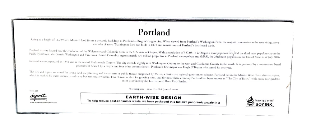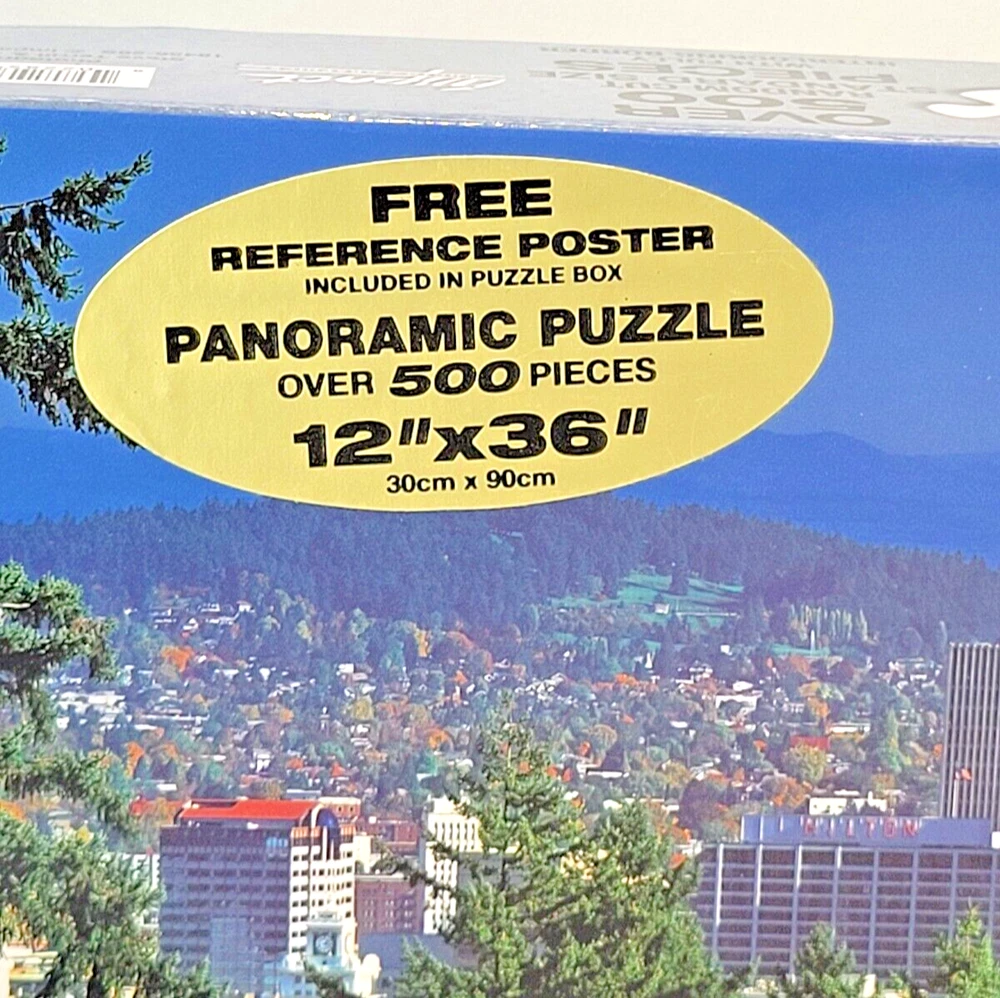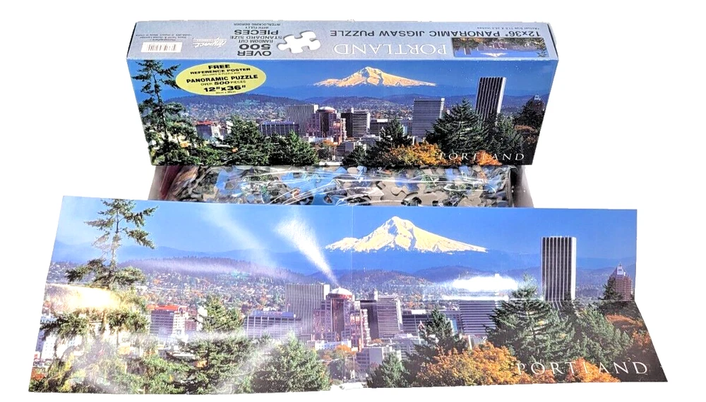 Panoramic view of Portland, with Mt. Hood in the background. 11.5 x 35.5" We did not work the puzzle or count the pieces, so we cannot guarantee that all pieces are present. Each item is carefully packaged to prevent any damage and is shipped immediately with tracking.