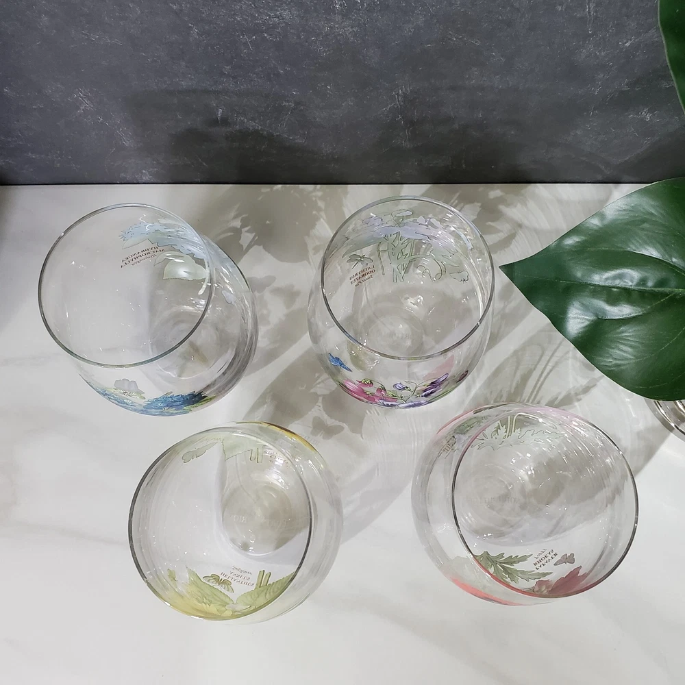 Portmeirion Botanic Garden Stemless Wine Glasses 19 oz Set of 4 No cracks or chips Helianthus Annuus - Sunflower Hydrangea Macrophylla - Hydrangea Lathyrus Odoratus - Sweet Pea Papaver Rhoeas - Peony Thank you for viewing our products. PRODUCT SOLD AS IS. Please Message With Questions Prior To Purchase. If you have an issue with any of our items please reach out to us prior to contacting eBay. Thanks! Please note: We do sell new and used items. Our used items are pre-owned / pre-loved & may show signs of wear. Please view all photos for details, size, & imperfections as they are a form of the descriptions in addition to what is stated in the description section. We will do my best to inspect each item to find the best quality items possible. If an item is sent to you NEW / SEALED and you open it or remove the tags, it is NO LONGER ELIGIBLE FOR RETURN. Opened items / Removed tags - Means the item is NO LONGER in its original state and can no longer be sold as NEW. -Thank you for your understanding We are often asked about shipping cost. We are excited about your purchase and take pride in your package arriving to you undamaged . We wrap and cushion all necessary items prior to shipping which adds weight to your package. Unfortunately, this is not optional. Thank you for your understanding. We do not accept returns or issue refunds however in the event we do accept your return or issue a refund we do not reimburse your original shipping fee. Due to how eBay handles international shipping we do not accept any international returns. Thanks again!