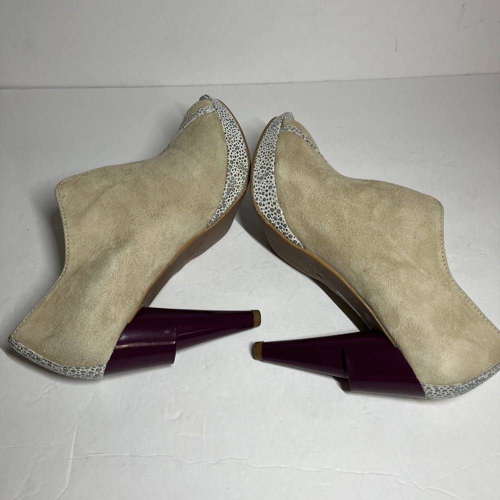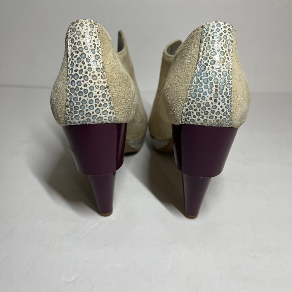 Portugal Made Guava Women's Size 37 Beige Purple Peep-Toe Platform Shoes Rare LN