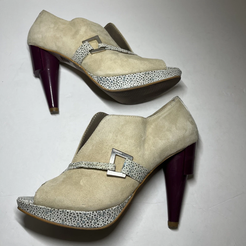 Country/Region of Manufacture: Portugal Pattern: Colorblock Style: Platform Color: Beige Type: Heel Vintage: No Heel Style: Stiletto Upper Material: Suede Accents: Logo Occasion: Party/Cocktail, Formal Department: Women Season: Summer, Spring, Fall Heel Height: Ultra High (4 in & Higher) US Shoe Size: 6.5 UK Shoe Size: 4.5 Closure: Slip On Platform Height: 1 in Theme: Art, Buildings & Monuments AU Shoe Size: 4.5 Heel to Toe Drop: 4 mm Brand: Guava Personalize: No Customized: No EU Shoe Size: 37