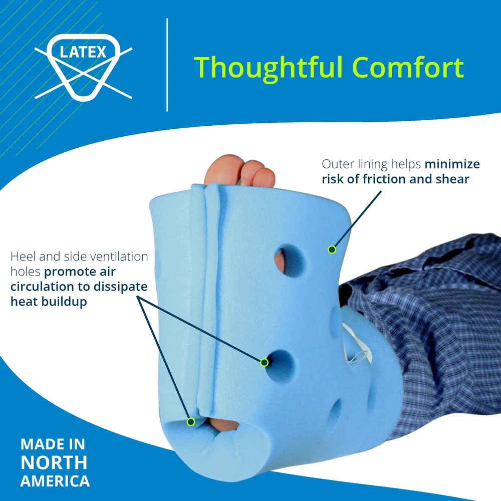 Posey TIDI Heel Guards – One Size Fits All – Foam, Light Blue – Qty: 1 Pair Of Heel Guards Per Package – Foam Heel Protectors For Pressure Injuries – Heel Off-Loading Devices – Home Care (6127), Large Product Details Brand: Posey Color: Blue Product Benefits: POSEY HEEL OFFLOADING DEVICES Heel Guard, 12"L x 7 1/2"H, Convoluted Foam with Straps Use for: Heel Material: Foam Is Discontinued By Manufacturer : No Package Dimensions : 19.33 x 13.03 x 6.46 inches; 4 ounces Item model number : 6127 Date First Available : May 18, 2014 Manufacturer : TIDI Best Sellers Rank: #280,383 in Health & Household (See Top 100 in Health & Household) #920 in Heel Cushions & Cups #920 in Heel Cushions & Cups Customer Reviews: 3.5 3.5 out of 5 stars 60 ratings WOUND CARE PREVENTION: These soft foam heel protector boots help protect the lower leg and foot to prevent skin breakdown SMART DESIGN: The heel guard functions as a high resilience foam heel off-loading device that floats the heel and helps reduce the risk of foot drop; an open heel cutout allows the heel to be suspended to help reduce the risk of skin irritation and pressure injuries THOUGHTFUL COMFORT: Heel and side ventilation holes promote air circulation to dissipate heat buildup; outer lining helps minimize risk of friction and shear; the convoluted foam boot is made without using latex ADJUSTABLE FEATURES: An adjustable foam elevation block helps optimize individual positioning and heel lift; the boots adjustable straps allow easy adjustment for degree of foot drop control ONE SIZE FITS ALL: Each foam pressure-reducing heel protector measures 12" long x 7.5" tall (30 cm x 19 cm) QUANTITY: One (1) pair of foam heel protectors per package MADE IN NORTH AMERICA: Posey Heel Guards are made in North America and meet CA #117, Section E Flame Retardancy Standards Used in hospitals and ideal for home care, TIDI’s soft foam Posey Heel Guards help protect the lower leg and foot to prevent skin breakdown. This heel guard functions as a high resilience foam heel off- loading device that floats the heel and helps reduce the risk of foot drop. Its open heel cutout allows the heel to be suspended to help reduce the risk of skin irritation and pressure injuries. Designed with comfort in mind, heel and side ventilation holes promote air circulation to dissipate heat buildup whereas the outer lining helps minimize the risk of friction and shear. An adjustable foam elevation block helps optimize individual positioning and heel lift, and the boot’s adjustable straps allow easy adjustment for degree of foot drop control. Each foam pressure-reducing heel protector measures 12" long x 7.5" tall (30 cm x 19 cm), a size that fits all, and is made without using latex. Quantity: One (1) pair of foam heel protectors per package. These heel guards meet CA 117, Section E Flame Retardancy Standards. For more than 80 years, Posey, a TIDI Products brand, has been an industry leader in falls prevention and patient safety. Manufacturer Contact Information