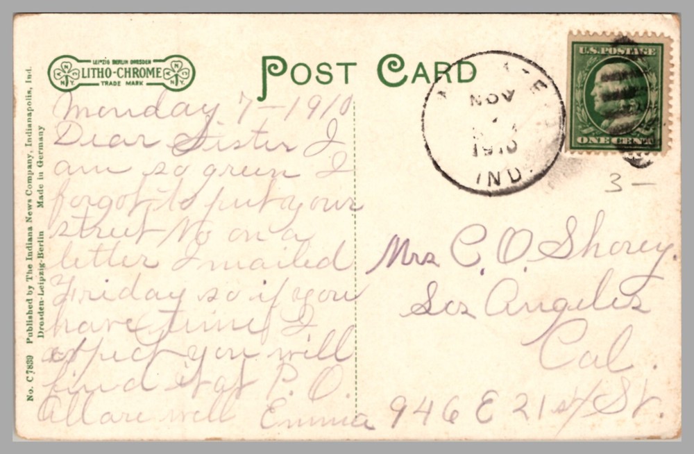 Step back in time with this authentic antique postcard featuring an exterior view of the Post Office in Crawfordsville, Indiana, dating back to around 1910. Published by The Indiana News Company, this printed lithograph is a remarkable piece of history from the Divided Back Era, capturing the essence of early 20th-century American architecture and city life. This standard-sized collectible (5.5 x 3.5 in) is crafted from quality paper and originates from the United States, specifically from the vibrant heartland of Indiana. It's an original piece, not a reprint, and it's been posted, adding to its charm and historical value. Whether you're a postcard enthusiast or a historian, this slice of Americana is sure to be a treasured addition to your collection.