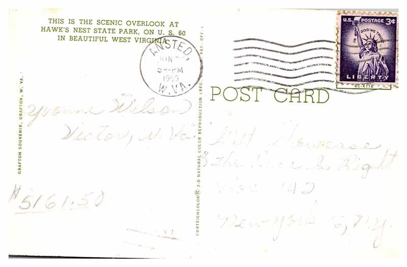 Material: Paper Unit of Sale: Single Unit Country: USA Subject: Bridge Postage Condition: n/a Size: Standard (5.5 x 3.5 in) Era: see features for era City: Hawks Nest State Park Continent: North America Original/Licensed Reprint: Original Type: Printed (Lithograph) Country/Region of Manufacture: United States Region: West Virginia