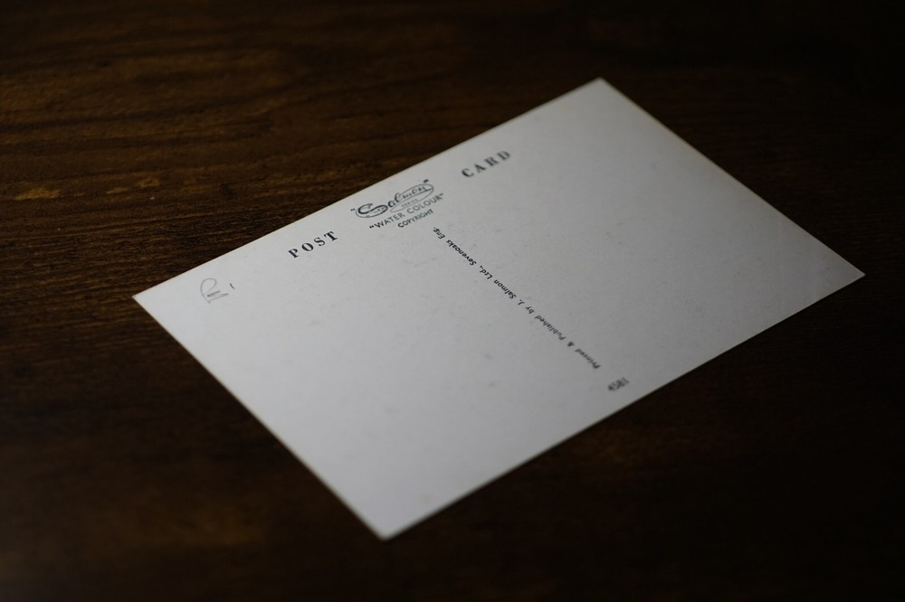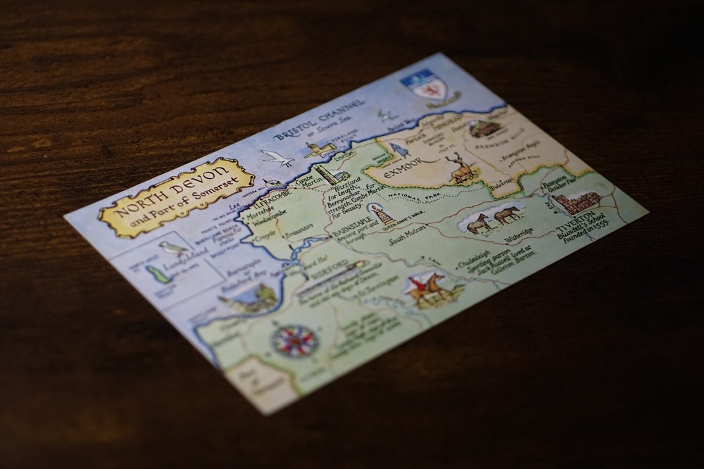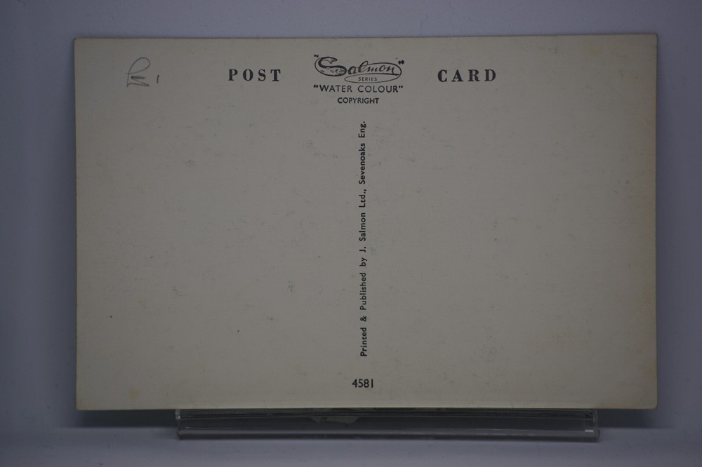Postcard Comic Map North Devon Somerset England Bristol Channel M F Peck Salmon © J Salmon Limited Water Colour Series No. 4581 Unposted. Good vintage condition. Bending and creasing in multiple places across postcard. No visible damage to any of the edges. All corners slightly bent. Dirt spots, discoloration, creasing, scratches, missing paint and stains marks may be visible on single or both sides of the postcard. Good condition for its age. Please look at the photos for condition details. Keywords: Bridge Bridges Tourist River Rivers Scenic Main Street Aerial Bird's Eye Birds Eye Multi View Banner