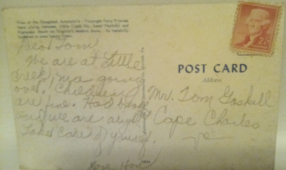 A printed postcard featuring the Ferry Princess Anne traveling between Kiptopeke Beach and Little Creek, Virginia. This photochrome postcard captures a scene of tourism and transportation in Virginia, showcasing landscapes, architecture, and cultural elements of the region. The standard-sized postcard is an original lithograph from the United States, depicting a ferry crossing with historical and geographical significance.