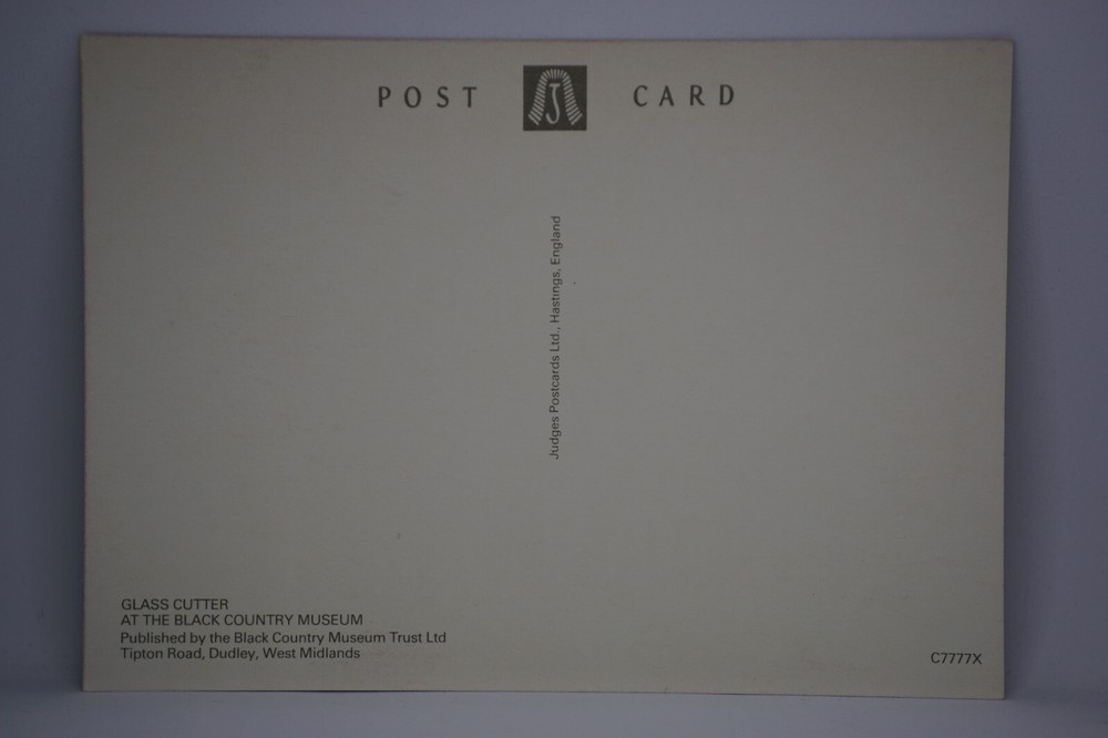 Postcard Glass Cutter At The Black Country Museum Workshop Dudley Worcestershire Glass Cutter At The Black Country Museum Published by the Black Country Museum Trust Ltd Tipton Road, Dudley, West Midlands Judges Postcards Ltd., Hastings, England C7777X Unposted. Good vintage condition. No visible damage to any of the edges. All corners slightly bent. Dirt spots, discoloration, creasing, scratches, missing paint and stains marks may be visible on single or both sides of the postcard. Good condition for its age. Please look at the photos for condition details.