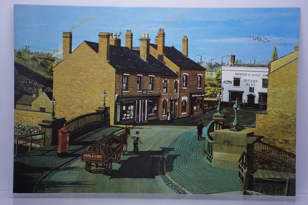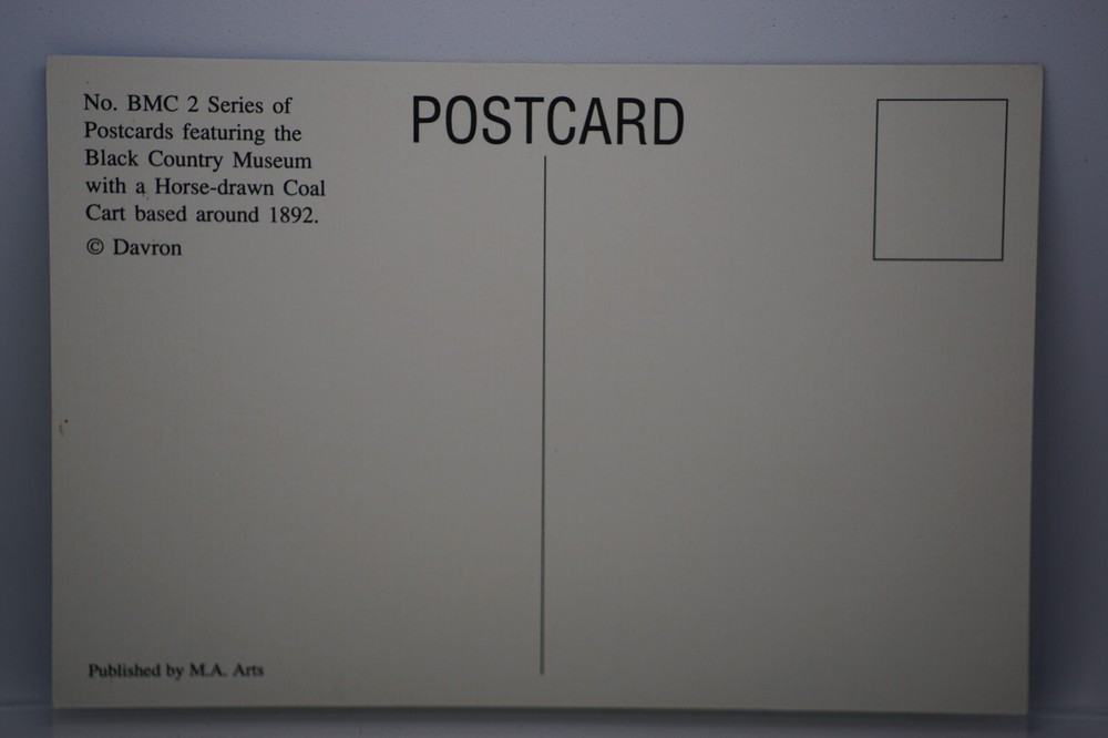 Postcard Horse-Drawn Coal Cart Black Country Museum Victorian Street Art Dudley The Black Country Museum No. BMC 2 Series of Postcards featuring the Black Country Museum with a Horse-drawn Coal Cart based around 1892. Davron Published by M.A. Arts Unposted. Good vintage condition. No visible damage to any of the edges. All corners slightly bent. Dirt spots, discoloration, creasing, scratches, missing paint and stains marks may be visible on single or both sides of the postcard. Good condition for its age. Please look at the photos for condition details. Additional details : Black Country Living Museum Do you remember going to the Black Country Living Museum when it first opened in 1975? Back then, there was no underground coal mine, Victorian school, Bradburn & Wedge car garage, Hobbs’ Fish & Chip shop, sweet and baker’s shop – the things that so many of us now love about the museum. In fact, it actually started life as planned buildings and streets marked out with tape so people really had to use their imagination! But the idea of an open-air museum was a complete novelty in Britain, which is why it has always been so special. Work began in 1975 on transforming a lime shafted, almost derelict land littered with in-filled mine infrastructure into a typical Black Country Village. Original buildings were taken from a derelict street in Oldbury and transformed into the hardware shop, pawnbrokers, back-to-back cottages, trap-making factory and chain shop. In the Eighties, the museum held car and bike rallies and boaters gatherings, together with Michaelmas markets at Christmas. This year, the museum is celebrating its 40th anniversary, and continues to go from strength to strength. The museum’s first director Ian Walden says: “Black Country Living Museum had a fantastic start and much support and national recognition to help it on its way to where it is today.” Keywords: Old theme park ; Classic Easter
