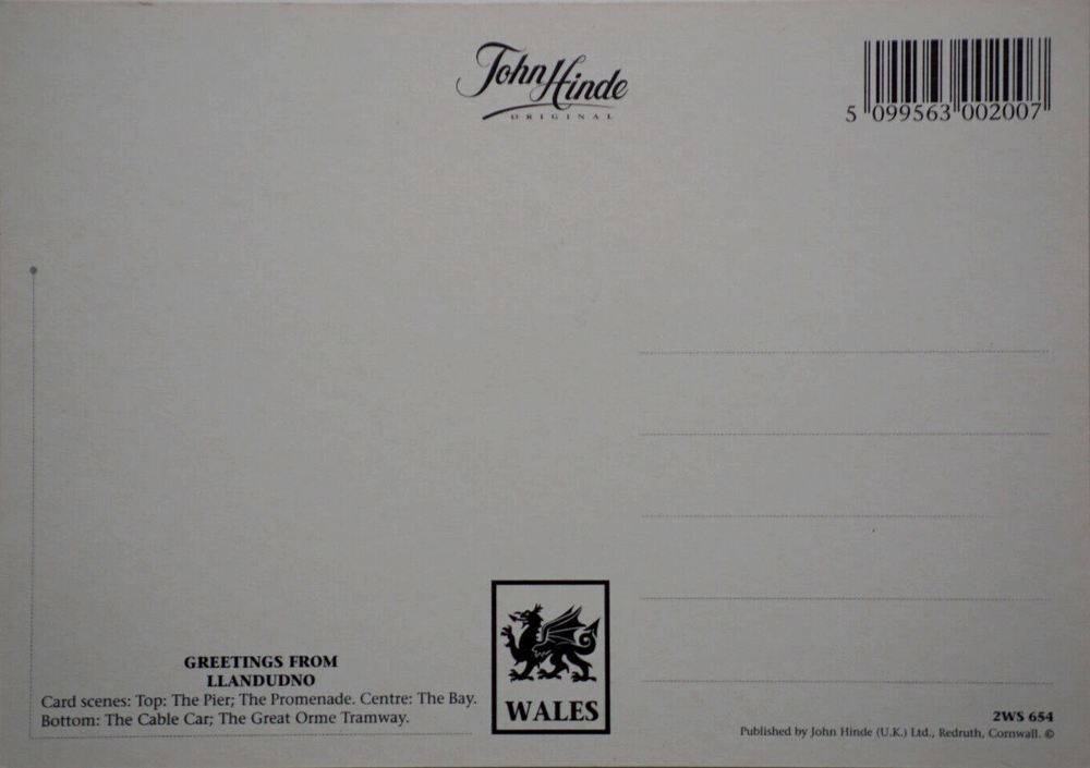 Postcard Llandudno Pier Promenade Bay Cable Car Great Orme Tramway Gwynedd Wales Unposted. Good vintage condition. No visible damage to any of the edges. All corners slightly bent. Dirt spots, discoloration, scratches, missing paint and stains marks may be visible on single or both sides of the postcard. Good condition for its age . Please look at the photos for condition details.