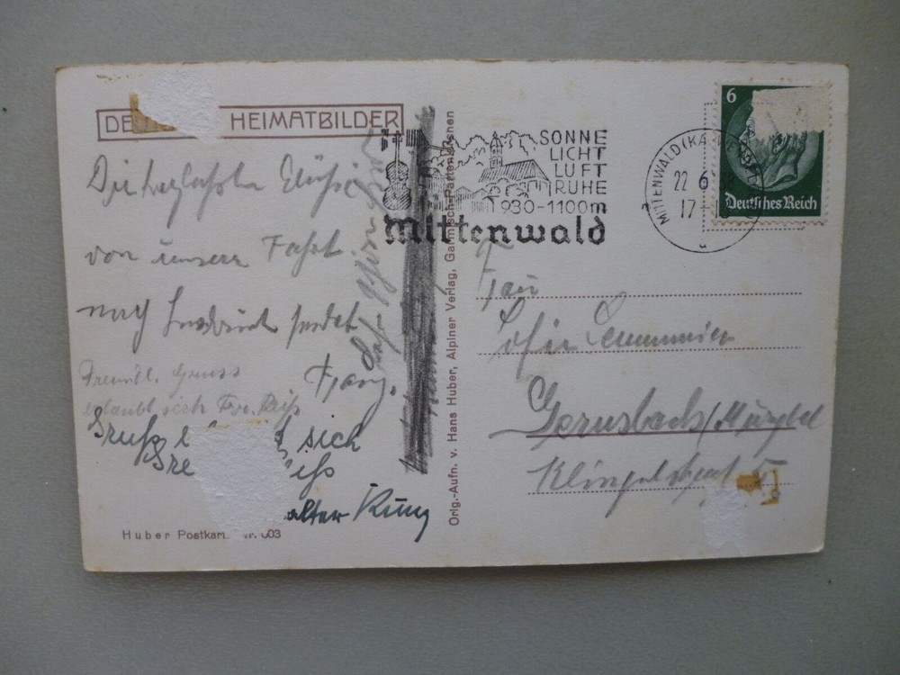Ansichtskarte Mittelwald gegen Seefelder Berge Karwendel 1938 Sprache Deutsch Gewicht ca. 20 g Bestell-Nr 68648 Bemerkungen - Ansichtskarte Mittelwald gegen Seefelder Berge Karwendel 1938 (--- Suchworte: )Sie finden jeweils ein Foto der Vorder- und Rückseite der Ansichtskarte. Diese Fotos sind Bestandteil unserer Zustand- und Artikelbeschreibung. In der Regel sind die Ecken und Kanten gering / etwas bestoßen. - 463 - Lagerfach: 901-463-B17 Schlagworte Ansichtskarte, Österreich, Ortsansicht, Landeskunde, Ortsgeschichte Unser Preis EUR 13,50 (inkl. MwSt.) Versandkostenfrei innerhalb Deutschlands Weitere Abbildungen Aufgenommen mit whBOOK Sicheres Bestellen - Order-Control geprüft! Artikel eingestellt mit dem w+h GmbH eBay-Service Daten und Bilder powered by Buchfreund (2025-12-08)