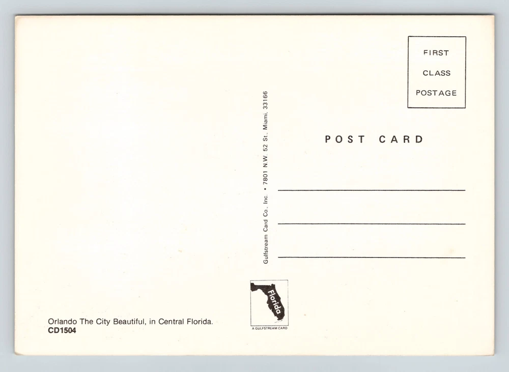 Type: Printed (Lithograph) City: Orlando Era: Photochrome (1939-Now) Region: Florida Subject: Street View Theme: Aerial View Material: Cardboard Size: Continental (6 x 4 in) Unit of Sale: Single Unit Postage Condition: Unposted Original/Licensed Reprint: Original Country: United States