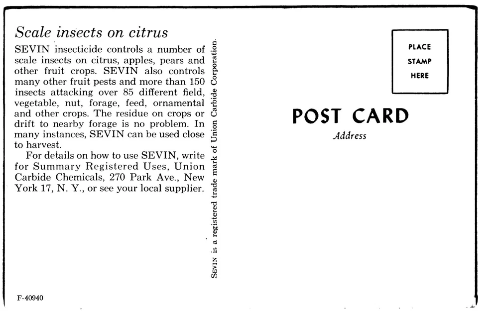 Postcard - Scale Insects of Citrus Add for Sevin Insecticide