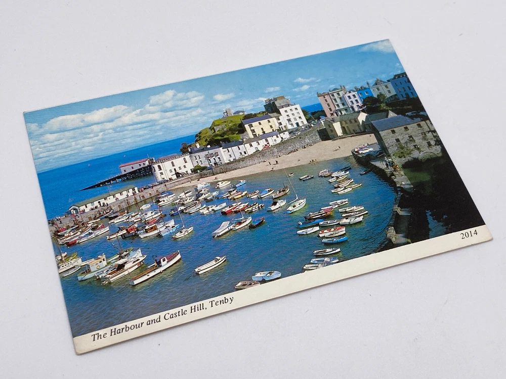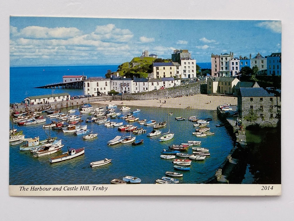 Postcard The Harbour and Castle Hill Tenby Wales Dyfed Pembrokeshire Carmarthen Unposted. Good vintage condition. No visible damage to any of the edges. All corners slightly bent. Dirt spots, discoloration, scratches, missing paint and stains marks may be visible on single or both sides of the postcard. Good condition for its age . Please look at the photos for condition details.