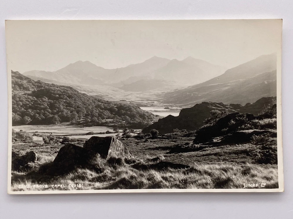 Postcard Wales Gwynedd Capel Curig Snowdonia Llugwy Mountain Landscape RPPC Unposted. Good vintage condition. No visible damage to any of the corners or the edges. At the back pen writing reading “Wales Gwynedd”. Good condition for its age . Please look at the photos for condition details. Capel Curig is a village and community in Conwy County Borough, Wales. Historically in Caernarfonshire, it lies in the heart of Snowdonia, on the River Llugwy, and has a population of 226, reducing slightly to 206 at the 2011 census. ABOVE CAPEL CORIGLA JUDGES L POSTCARD PICTURE BY JUDGES' LTD HASTINGS ENGLAND GREETINGS AND GOOD WISHES WALES GWYNEDD