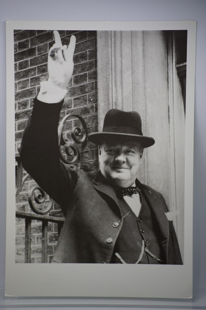 Postcard Winston Churchill Gives His V For Victory Salute June 1943 Imperial War Winston Churchill gives his V for victory salute, June 1943 Reproduced with kind permission of the Hulton Picture Company Imperial War Museum PCS 24/3 Printed by PJ Reproductions Ltd. London W3 80H Unposted. Good vintage condition. No visible damage to any of the edges. All corners slightly bent. Dirt spots, discoloration, creasing, scratches, missing paint and stains marks may be visible on single or both sides of the postcard. Good condition for its age. Please look at the photos for condition details.