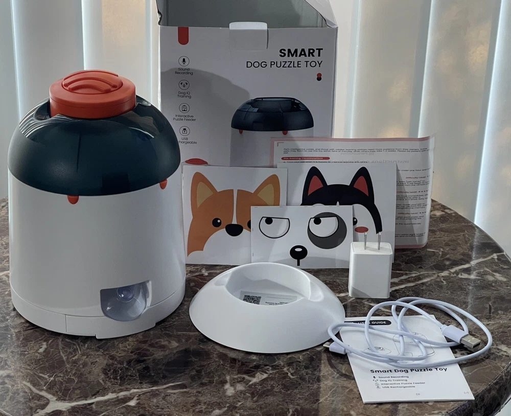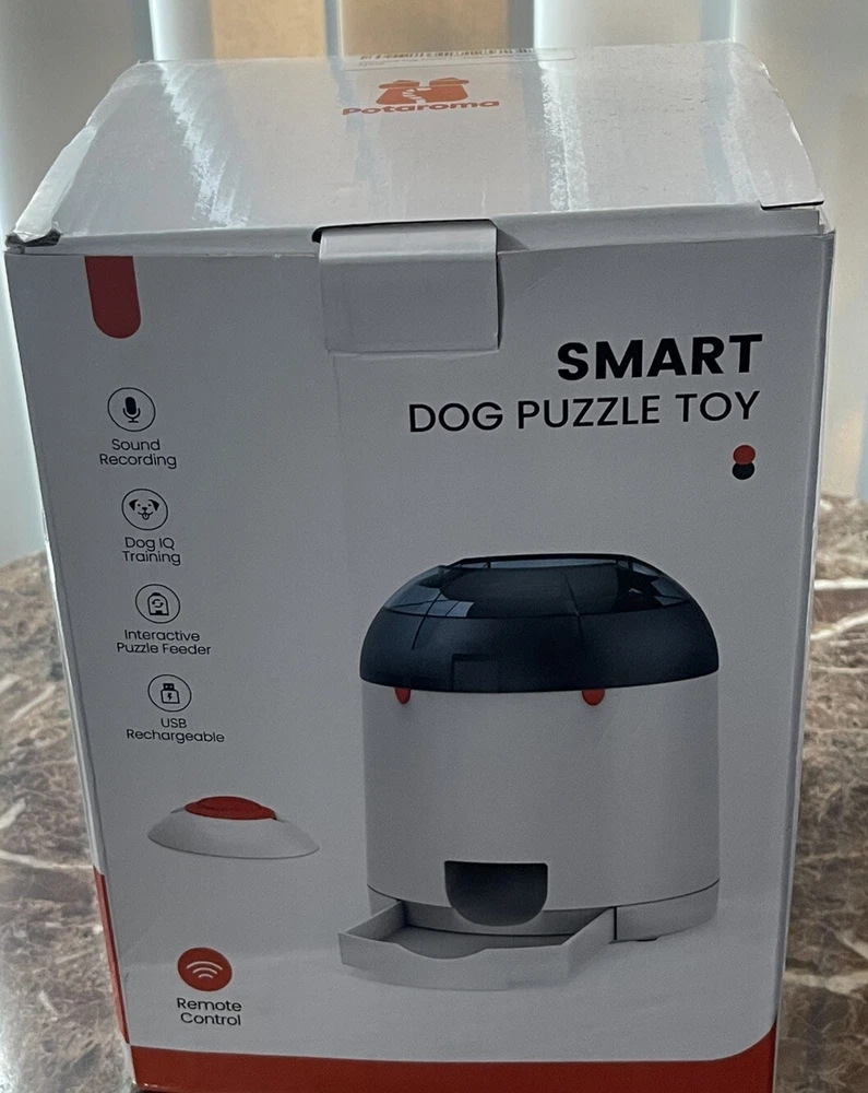 Potaroma Dog Puzzle Feeder Toy, Interactive IQ Training, Electronic Dog Toys, Automatic Rechargeable Treat Dispenser, Push Remote for Dog Food Dispensing for All Breeds of Dogs, 280ml Capacity