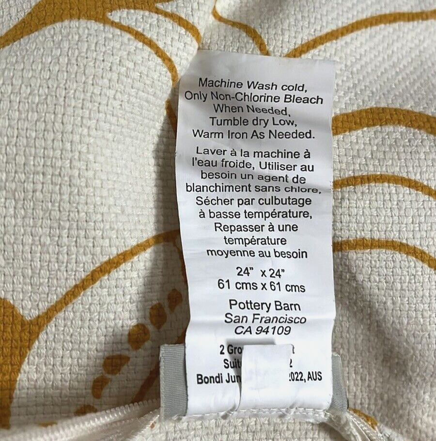 100% cotton reversible pillow cover, 24” square, from Pottery Barn. Very good condition overall; one small/subtle mark on one side (see closeup). Freshly laundered and line dried. I ship quickly! Same day whenever possible!