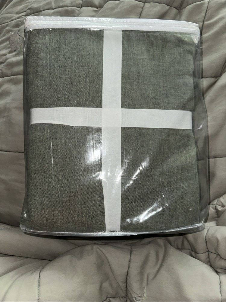 The Pottery Barn Belgian Flax Linen Duvet Cover in Loden Green is a luxurious addition to any bedroom. Made from high-quality linen and flax, this duvet cover offers a comfortable and stylish option for a queen-sized bed. The elegant color and brand reputation of Pottery Barn ensure a timeless and sophisticated look for your bedroom decor.