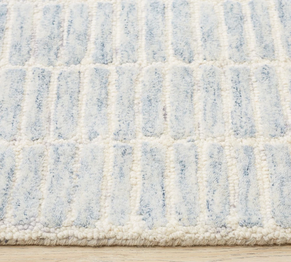 Item Width: 8ft Original/Reproduction: Original Type: Area Rug Item Thickness: 0.25ft Time Period Manufactured: 2020-Now Color: Blue Department: Kids, Teens, Adults Country/Region of Manufacture: India Room: Any Room, Basement, Bedroom, Conservatory, Dining Room, Foyer, Garage, Guestroom, Hallway, Home Office/Study, Kitchen, Living Room, Lounge, Nursery, Trailer Pile Height: Medium Shape: Rectangle Handmade: Yes Regional Design: Indian Material: 100% Wool Size: 8 x 10 ft Pile Type: Cut & Loop Era: 21st Century (2000-Now) Weave: Hand-Tufted Pattern: Geometric Style: Contemporary Brand: Pottery Barn Item Length: 10ft Production Technique: Tufted