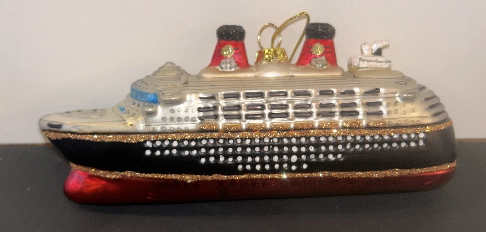 Adorn your Christmas tree with the whimsical charm of the Pottery Barn Cruise Ship Christmas Ornament. This small, intricately designed glass ornament captures the essence of a nautical adventure, making it a delightful addition to your holiday decor. Its vibrant, multicolor palette and detailed ship shape bring a touch of seaside nostalgia to your festive celebrations. Crafted with care, this unbranded ornament is perfect for those who appreciate a unique and tasteful holiday accent. Whether you're looking to commemorate a special trip or simply want to infuse your holiday with a coastal theme, this ornament is a wonderful choice that will surely become a cherished part of your Christmas tradition. kk381