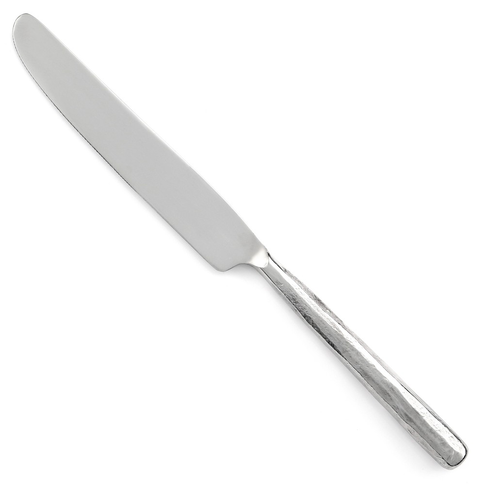 choice flatware Pottery Barn Perotti Pieces Dinner Fork 8 1/8" Length 8 1/8" Dinner Knife 9" Length 9" Handle Type Solid Handle Blade Type New French Blade Place/Oval Soup Spoon 8" Length 8" Salad Fork 7 1/2" Length 7 1/2" Teaspoon 7" Length 7" Condition Statement Great condition with only light, minor scratches from common use. Marks INDIA
