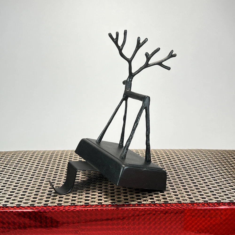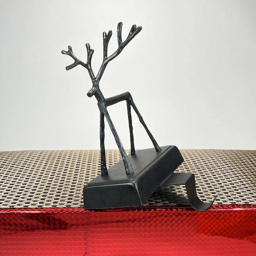 Pottery Barn Retired Twig Reindeer Stocking Holder Hanger Antique Bronze Black Very good used condition. No major blemishes,scratches, or dents. Height: 7” Width: 5” Base Depth: approx 2.75” not including hook Base depth including hook: approx 5” Free shipping via USPS Ground Advantage.