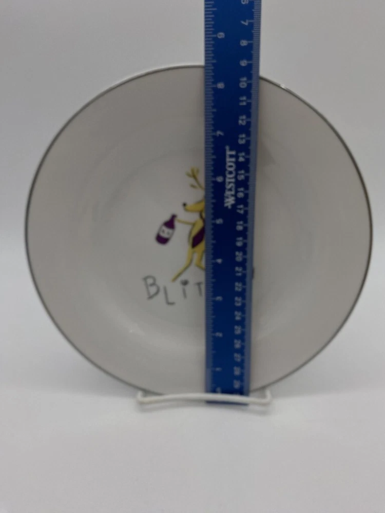 Pottery Barn Reindeer Plate 8 1/2" Salad plate very nice clean condition silver band around plate Blitzen Box 114
