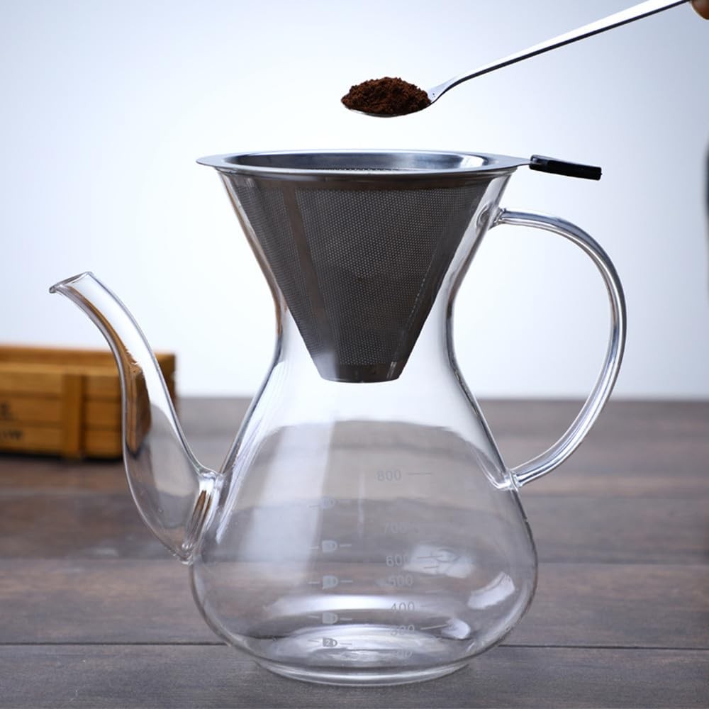 name: Pour into the coffee pot reusable stainless steel filter and the latest borosilicate coffee pot in BPA-free glass water bottle Latest trends: The borosilicate glass coffee pot provides functional and technical design for those who need a more basic and controlled brewing method. Our coffee pot can brew 1-4 cups at a time. Capacity: 34l Material: Borosilicate glass Design: Eagle mouth kettle, can be poured accurately Great for families, parties, and tea time. Also compatible with lemon tea, ice tea or other drinks, enjoy your coffee time user's guidance 1> Put the coarsely ground coffee into the filter 2>Pour boiling hot water slowly into the coffee pot filter. 3> Hold for one minute, remove the filter, pour in and enjoy your coffee time. [Paperless pour into coffee maker steel filter]: Pour the coffee pot into a filter cup equipped with borosilicate glass, double-layer design, one design for fine gauze paperless filtration zero residue, another design Stainless steel round hole cover, double internal and external, so that all coffee nutrients and flavor oil can pass through. [Permanent stainless steel filter]: Disposable filters have become history. They cost money, remove flavors, cause waste and damage the environment. This laser-cut stainless steel mesh filter ensures that the odor falls on your lips instead of falling into the trash 【Fine Mouth Kettle Kettle】This elegant pouring coffee pot is designed with fashionable olecranon. It is exquisite and compact in shape and easy to carry. It is ergonomically designed. The coffee liquid is smooth and not easy to leak. Easy to use and clean. [Perfect Service]: This coffee machine provides a perfect choice for families, parties, and afternoon tea. It is also compatible with lemon tea, ice tea or other beverages. Our coffee pot can brew 3-6 cups cups at a time.(Comes with a stainless steel two-in-one coffee and tea spoon) [Attention to heat protection] The coffee pot uses high borosilicate, which can withstand the temperature change of -20°C-150°C, and will not produce any chemical impurities in your handmade coffee. When brewing coffee by hand, safety is important. The tipping coffee machine kit has a heat-resistant silicon collar that enhances grip and prevents burns when pouring hot water. The dishwasher is safe. Can be used at home, travel or office. 34oz.