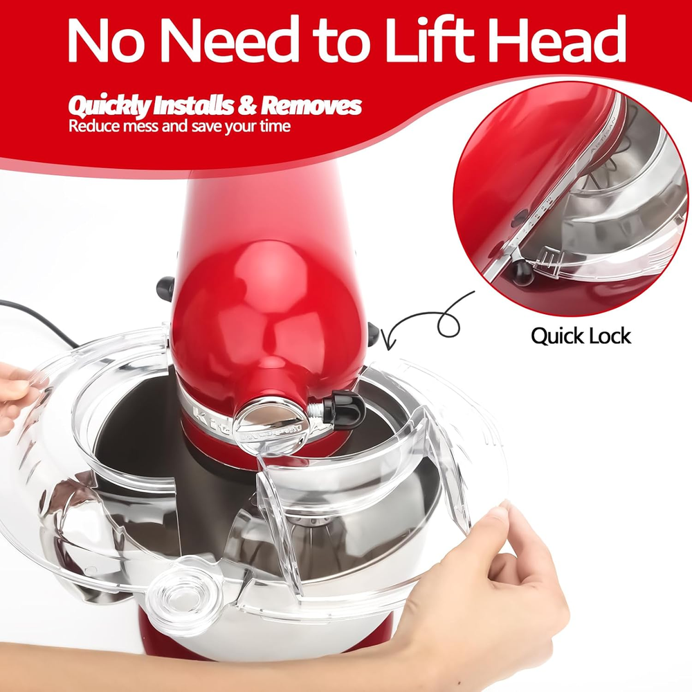 【Wide Compatibility & Totally Enclosed Design】Wanyshapy's pouring shield accessories and attachments for kitchen aid stand mixer is made of food-grade PC plastic, carefully designed to be perfectly compatible with the KitchenAid 4.5 -5 QT Tilt Head Stand Mixer Stainless Steel Bowl. Based on market, Wanyshapy adopts a fully enclosed design with no dead ends in all directions, perfectly preventing spills and splashes. Providing you with an easy and convenient cooking experience 【Innovative flip-top design】Add your desired ingredients at any time. Simply push and pull with your finger to operate. 【Clean, Relaxing, and Enjoyable Cooking Experience】Wanyshapy features a brand new design with a large angle pouring chute that allows you to add a variety of ingredients with ease; the full wrap-around pouring shield and pouring chute dust cover perfectly retains the ingredients in the center of the mixing bowl, and the mixing will be more efficient and thorough, effectively preventing splashes and spills when mixing lightweight ingredients such as flour, and minimizing countertop messes 【Safer Food Grade Materials】Wanyshapy closed mixing bowl cover shield is made with food-grade plastic, which possesses good corrosion resistance to acid and alkali, is environmentally friendly, non-toxic, odorless, and durable. At the same time, the Wanyshapy mixing bowl shield has excellent mechanical properties, its impact strength is good, and even if the mixing bowl shield is destroyed, it will only be torn and will not produce a lot of flying debris, safe and reliable. 【Easy to Install and Clean】Wanyshapy splatter guard for the mixer is very easy to install and remove and can be used easily without practice. It is also easy to clean and maintain, just rinse and wipe with water and a soft cloth after use. Product Description for KitchenAid Accessories Add to Cart Add to Cart Add to Cart Customer Reviews 4.5 out of 5 stars 211 4.6 out of 5 stars 31 4.5 out of 5 stars 211 4.5 out of 5 stars 211 4.5 out of 5 stars 211 4.5 out of 5 stars 54 4.5 out of 5 stars 54 Price $17.21 $ 17 . 21 $19.99 $ 19 . 99 $16.99 $ 16 . 99 $16.99 $ 16 . 99 $16.99 $ 16 . 99 $9.99 $ 9 . 99 $13.42 $ 13 . 42 Compatibility 4.5-5 QT 6-7Qt 4.5-5 QT 4.5-5 QT 4.5-5 QT 4.5-5 QT 5-8 Qt Color Clear Clear Blue Gray Red Black Black Material PC PC PC PC PC Polyethylene Polyethylene Accessories Pouring Shield Pouring Shield Pouring Shield Pouring Shield Pouring Shield Slider Mat Slider Mat Reusable √ √ √ √ √ √ √