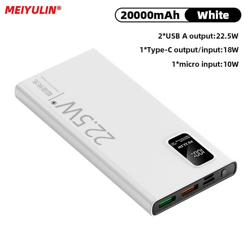 Free and fast shipping , shipping take up 1-7 Business Days 30 Day Return Accepted EASY PAYMENT via PayPal, Credit Card, PayPal Credit, Google Pay... Power Bank 20000mah Mobile Phone Plastic Small Multicolor 2-usb 5v Backup 10000mAh Portable Power Bank 20000mah 22.5W 10W USB Type-C Fast Charging External Auxiliary Battery Powerbank for iPhone 14 13 Samsung Xiaomi HUAWEI features Battery capacity: 10000mAh/20000mAh Rated capacity: 6000mah/12000mah 22.5W style input Type-C input:18W micro input:10W output Type-C output:18W 2*USB A output:22.5W REVIEWS The product came very well packaged. I'm very happy. thank you for everything. Seller strongly recommended. This is great! I definitely recommend! Product looks amazing Delivery was fast. Excellent seller, great communication. I advise everyone to buy it!