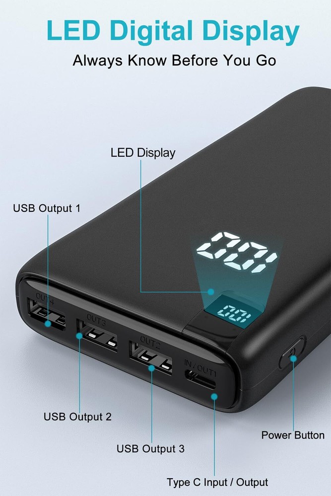 Power Bank 26800mAh Portable Charger, High Capacity Phone Charger Compact External Battery Pack with LED Display and 4 Fast Charging Outputs for Cellphone Tablet 26800mAh Huge Capacity: 26800mAh power bank can charge most phones for 8-10 times and other USB devices multiple times for an average of 9 days of unrestrained usage per charge, and no need to worry about losing contact with anyone due to out of power. 4 Outputs & 2.5X Fast Charge: It can charge 4 devices simultaneously and you can share it with your family and friends. 3.0A fast charging speed ensures 2.5 times faster than ordinary power bank, greatly shortens charging time for your phones. Fashionable LED Digital Display: This unique portable charger features an excellent LED indicator, percentage-based readout shows you the precise remaining power. No more guessing about the remaining power and when to recharge. Know before you go! Portable Power Bank: With exquisite and grippy design, this charger is easy to hold, convenient to toss into pocket or bag and incredibly portable. Perfect partner for party, dating, long distance, business and airplane trip. Superior Safety: The built-in smart circuitry ensures protection against overcharging, short-circuiting and discharging thus protect your devices. You can charge your devices safely. Shipping We offer FREE shipping on all orders! We ship within Three business days of payment, usually sooner. We use a selection of shipping services such as UPS, FedEx, USPS etc. We only ship to the lower 48 states, no APO/FPO addresses or PO Boxes allowed. Local pickups and combined shipping options are not provided at this time. Return You can return a product for up to 30 days from the date you purchased it. Any product you return must be in the same condition you received it and in the original packaging. Please keep the receipt. Payment We accept payment by any of the following methods: PayPal Please pay as soon as possible after winning an auction, as that will allow us to post your item to you sooner! Feedback Customer satisfaction is very important to us. If you have any problem with your order, please contact us and we will do our best to make you satisfied. Contact Us If you have any queries, please contact us via ebay. We usually respond within 24 hours on weekdays. Please visit our eBay store to check out other items for sale! Thank you for shopping at our store.