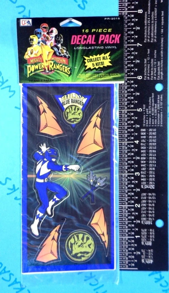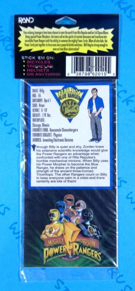 Sticker Pack Is Vintage New. Sticker Pack Contains 3 Sheets. Sticker Theme Is Power Rangers Billy Blue Ranger. Sticker Brand Is Saban - Rand. When Purchasing Multiple Sticker Sheets Or Packs Please Add All Items To Cart Before Purchase So That Your Purchase Combines Down To Base Shipping Price. All items are shipped WITHOUT tracking in an envelope with cardstock.