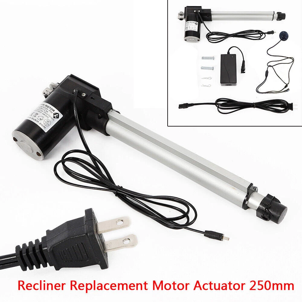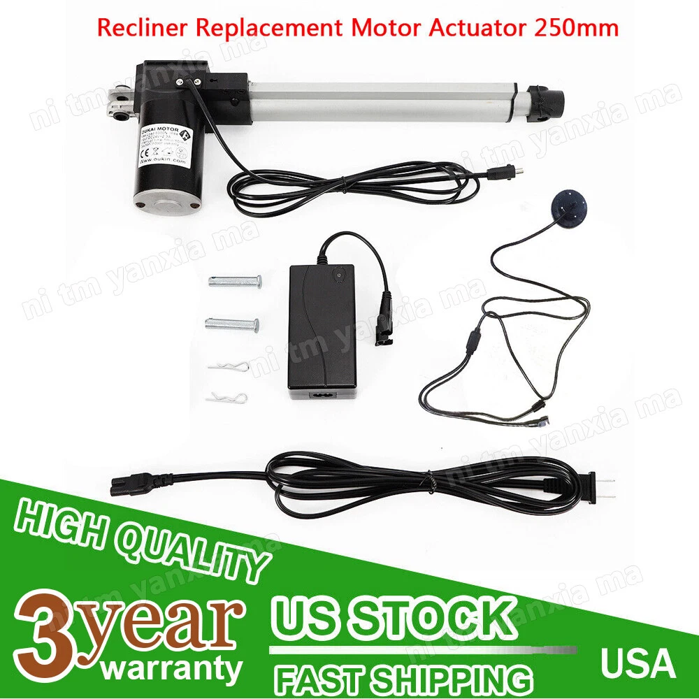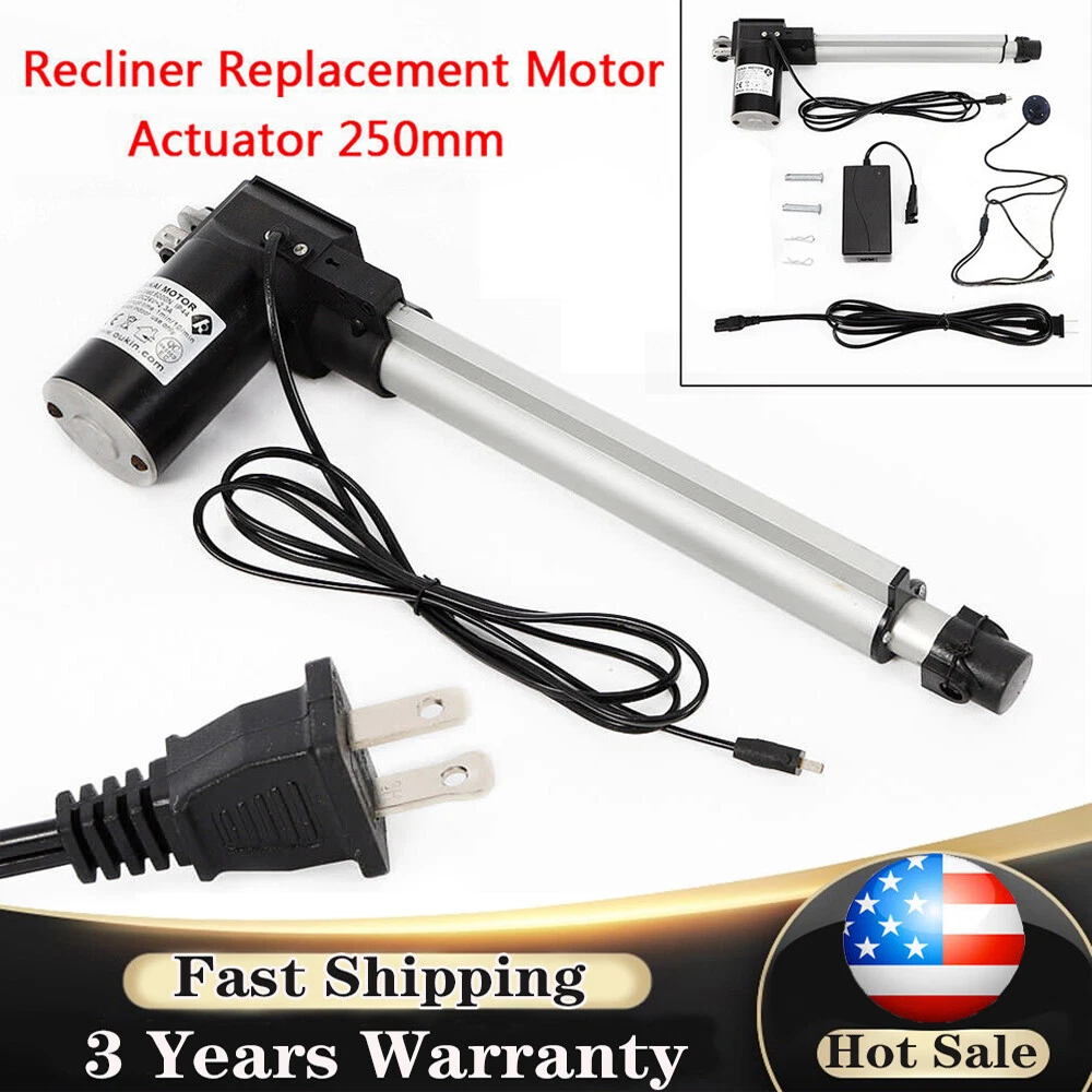 Power Recliner Motor Replacement Actuator Lift Mechanism Electric Chair Parts DC Power Lift Linear Actuator Motor Replacement Chair Power Recliner Actuator New 【Dc Motor】Motor Replacement Is Dc Motor, Small Mounting Dimensions, Easy to Install,Compact Design,This Recliner Lift Chair Motor Features a Compact Design That Makes It Ideal for Many Applications Either in the Medical or Industrial Sector. 【Durable Material】the Electric Recliner Adopt for Aluminum Actuator and Durable Pa6 Plastic Housing,Safe and Reliable. 【Application】This Power Recliner Lift Chair Linear Actuator Motor Will Open and Close the Lift Mechanism of Power Recliner or Lift Chair. 【Packages】 1 X Recliner Replacement Motor Actuator 1 X 8-Suffix Ac Line 1 X Dc Line 1 X Power Adapter 1 X Embedded Hand Controller 2 X Pins 2 X Cotter Pins Product description Specifications: Product: Power recliner motor actuator Stroke length: 250mm Permanent magnet DC motor drive Voltage: 24VDC Maximum push / pull: 100KG / 100KG Minimum installation size (distance between the push holes and the two holes before and after the return of the putter): L = S (stroke) + 175mm; The distance between the push rod and the two holes before and after is extended to =2XS (stroke) +175mm No load speed: maximum 40mm / S Rated load rate: 5mm / S (600KG) -40mm / S (30KG) Ambient temperature: -5 C + + 50 C Standard protection level: IP44 Unextended dimensions: 250mm + 175mm = 425mm Extended size: 250mm + 175mm + 250mm = 675mm Features: 24VDC permanent magnet motor Thrust up to 1000 N in push.and up to 1000 N in pull. Elegant and compact design with small installation dimensions Built-in limit switches (not adjustable) Aluminium outer tube Ø30 mm Aluminium inner tube ØØ24mm Steel back fixture Standard protection class, IP44 Noise level 48 dB (A), actuator not loaded. Duty cycle, Max 10% or 2 minutes continuous use followed by 18 minutes not in use. Option: Standard stroke, 25-800 mm, can design as customer’s requirement. Free load speed, 6.5mm-45mm/s Rated load speed, 4.5mm-40mm/s Application: This power recliner lift chair linear actuator motor will open and close the lift mechanism of power recliner or lift chair. Packages: 1 x Recliner Replacement Motor Actuator 1 x 8-suffix AC Line 1 x DC Line 1 x Power Adapter 1 x Embedded Hand Controller 2 x Pins Payment Delivery details Terms of sales About us Contact us Payment We accept ebay payment 。 Fees such as import duties, taxes are not included in the item price or shipping costs. These charges are the buyer's responsibility. Delivery details Shipping: 2-9 working days to: USA Terms of sales We maintain high standards of excellence and strive for hundred percent customer satisfaction. Feedback is very important to us. We hope that you contact us immediately before you give neutral or negative feedback, so that we can address your concerns. It is impossible to address issues if we do not know about them! About us Your satis faction is our ultimate goal. We work hard to earn your trust and future business. Our certified technicians have tested each item before shipping. The unit comes with 1 year limited warranty on all manufacturing defects. a) If you receive a defective item, you may return it or ask for a discount. Please contact us within 14 days after you receive the package. b) What you returned must be intact and in its original packaging as re? u. Customer is responsible for shipping costs of the returned item. c) We will cover the cost of shipping back t with the shipping rate indicated in the registration page. We will send you a new unit or refund the full payment you paid. Thank you. Contact us Business Hour Business Hour: Monday To Friday: 8:30 AM to 5:00 PM (Beijing China time) Due to time zones, our reply to your questions may not be immediately. But within above working time, we will reply your email within 24 hours. If it's non-workdays, please kindly be patient and wait till Monday. Please contact us with ebay message. Please feel free to contact us if you have any questions. Monday To Friday: 8:30 AM to 5:00 PM (Beijing China time) Due to time zones, our reply to your questions may not be immediately. But within above working time, we will reply your email within 24 hours. If it's non-workdays, please kindly be patient and wait till Monday. Please contact us with ebay message. Please feel free to contact us if you have any questions. On Nov 21, 2024 at 17:52:12 PST, seller added the following information: