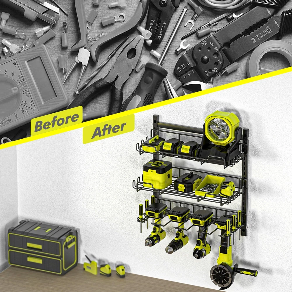 Amoowis Power Tool Organizer Wall Mount, 5 Min Fast Assembly & Max 35lb Load, 4 Slots 3 Layer Heavy Duty Metal Cordless Power Dill Holder Wall Mount Utility Shelf in Garage/Pegboard/Workshop 5-minute quick assembly: The tool organizer is very ease of assembly. It features a design for convenient tool organization and storage. Only four screws are needed to link the metal frame together and hang it on the wall. We provide professional manuals and accessories, you can be assembled a high-quality cordless tool rack in as little as 5 minutes Optimized details: The tool storage organizer consists of 3 shelves, each of which can be height-adjusted to accommodate items of varying tools. Every slot designed with a 30°anti-slip and storage shelves feature raised guardrails that safely store your tools Sturdy structure: The drill organizer wall mount is made from thickened heavy-duty steel, capable of bearing greater weight and durability. It's specially designed load-bearing structure securely supports the weight of power tools, prevent snap or loose, no more worry about the shelves breaking or tools holders falling Larger storage capacity: The wall-mounted power tool organizer has a unique three-layer design that allows it to be mounted in garage/workbench. Our power tools can be placed on the lower layer with four slot, and commonly used tools such as wrenches and hammers on the middle, and the top floor can hold multiple chargers to charge your power tools After-sales service: Amoowis is a specializing in tool organization storage company, always prioritizing user experience. If you have any questions about our tool storage organizer, please feel free to contact us. We are committed to providing you with a satisfactory solution Power Tool Organizer, 5 Min Fast Assembly, 4 Slots 3 Layer Heavy Duty Metal & Max 35lb load Cordless Power Drill Holder Wall Mount SHIPPING - We offer FREE shipping on all orders! - We ship within 3 business days of payment, usually sooner - We use a selection of shipping services such as UPS, FedEx, USPS etc - We only ship to the lower 48 states, no APO/FPO addresses or PO Boxes allowed International buyers – please note: Import duties, taxes, and charges aren't included in the item price or postage cost. These charges are the buyer's responsibility. - Please check with your country's customs office to determine what these additional costs will be prior to bidding or buying. - We have confidence in our products, but if you are not fully satisfied please contact us within 30 days of purchase and you will get full refund. * Order Cancellation Policy ** You can return a product for up to 30 days from the date you purchased it. 1. The seller reserves the right to cancel the special case only due to eBay cancellation fee. 2. The decision of seller is the final. 3. The seller will respond to the cancellation request within 2 business days. Please wait for the result of cancellation. 4. In case the cancellation is not completed by some reasons, the buyer can follow the options below to get the refund. 4.1 The buyer can reject the item when it arrives. 4.2 The buyer can send the item back to the seller within 30 days If the buyer receives item (USA Shipment ONLY). The seller will provide the FREE return label to the buyer when the buyer opens " Return Item" case on eBay by using the reason as "Change my mind" ONLY. 5. When buyer has placed the order. The order will be processed and completed by automatic warehouse system within 5 minutes. In case that buyer sends the cancellation request after 5 minutes of placing the order, the request will be rejected. **Sending direct message to cancel the order is not allowed for every case.* Return Policy For the return case - If buyer would like to return the items for refund or replacement, please CONTACT SELLER to receive the free return label from seller. The refund or replacement will be processed with the tracking number of return label which is provided by seller only. The other ways of return which are not approved by seller will not be processed for the refund or replacement. CUSTOMER SERVICE - We try our best to make sure every customer is completely satisfied. - If there's a problem, feel free to message us! - We're happy to help.