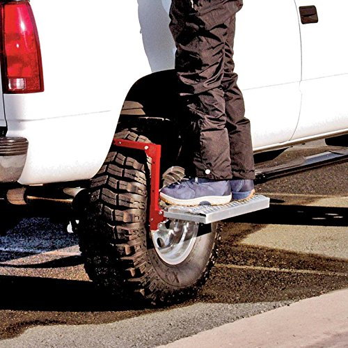 EASY TO USE: Slip this Heavy-Duty Truck Step over your vehicle tire, then reach your roof rack, engine bay, truck box, lumber rack, luggage, and bike without overreaching VERSATILE: The universal and height-adjustable design means it will fit car tires, truck tires, RV tires, even semi-truck tires (we tested it, it fits perfectly!) with a cross width of 13 inches or less at the tread SAFETY: The open design lets mud, slush, and debris pass through and the metal cheese grater surface with anti-slip tape strips offer incredible grip in the best and worst conditions EASY STORAGE: The folding design makes it easy to stow behind a seat, in a truck box, or RV storage bin SIZE AND CAPACITY: Platform is 8-3/4 inches x 21-3/4 inches with a 300-pound weight capacity Great for washing and waxing, loading roof racks, engine service and more Fits any diameter tire up to 12" deep On Sep 20, 2025 at 00:55:04 PDT, seller added the following information: On Nov 21, 2025 at 23:29:48 PST, seller added the following information:
