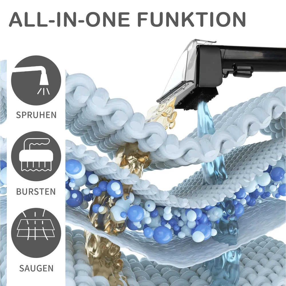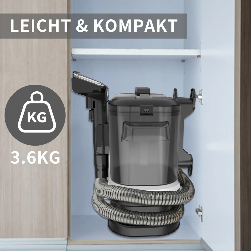 Feature: Deep Cleaning: Clean and refresh the carpets in your home with the deep cleaning performance of this carpet cleaner. Start cleaning with fresher carpets, as the 500-watt motor (vacuum ≥12Kpa) beautifies and refreshes the look and smell of carpet surfaces and removes dirt left by naughty pets. Dual Water Tanks: Removable water tanks for easy filling and emptying. The dual water tank system allows for cleaning with clean water while keeping dirt and dust separate. Pure water tank: 1800 ml, dirty water tank: 800 ml. Easy to carry: Equipped with a practical handle, it can be flexibly carried to any corner, and the winding vacuum hose has a neat appearance and will not take up a lot of your space. The noise level is ≤81dB. Multifunctional nozzle: Equipped with 3 cleaning heads (self-cleaning head, standard brush head, standard pet brush head) can help you clean fabric sofas or pets. Note: Not suitable for sucking up dry dust, large plastic bags, metal objects (such as needles), large amounts of waste, powder, sand and gravel. Wide Application: Our cleaner, designed for high efficiency, has powerful cleaning function. From pets to daily messes, this device can effectively remove dirt. It is a good helper for your daily cleaning of the home. Specification: Material: ABS Power: 500W Vacuum: ≥12Kpa Hose: 1.5M Package List: 1*Host 1*Self-cleaning head 1*Pet brush head 1*Brush head 1*Instruction manual 1*Wire winding rack 1*Handle rack