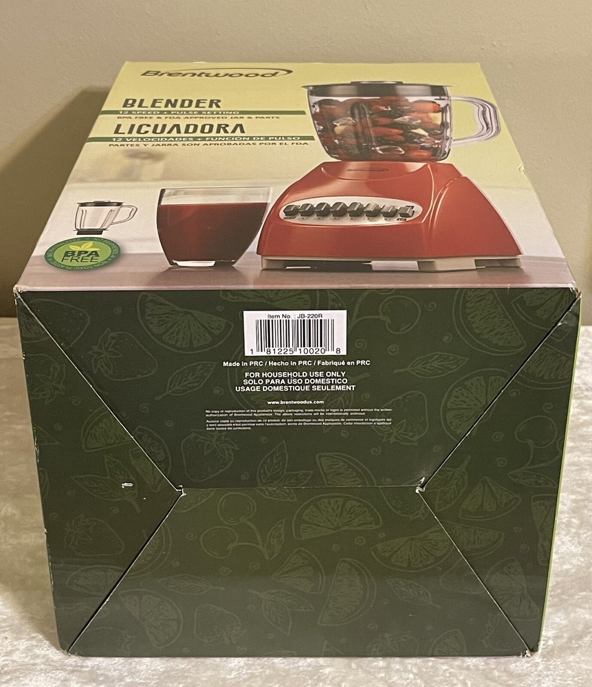 Description: (Estate T) Brentwood Blender + Pulse Blender 12-Speed Red JB-220R ~ New In The Box ~ Never Been Used Before See Pics Of The Box For Best Info Boxed Safely & Ready To Ship See Size & Weight In Pics Ships Same Day Or Following Business Day USPS Monday-Friday ~PLEASE SEE PICS FOR BEST INFORMATION~ I try my best to research everything I have the best that I can. If you see something I have gotten wrong, please let me know & I will happily & gladly investigate it & get it fixed. Thank you π ~ PLEASE SEE ALL PHOTOS & ASK ANY QUESTIONS YOU HAVE BEFORE BIDDING OR PURCHASING. ~ ~ ALL SALES ARE FINAL & SOLD "AS IS" EXACTLY AS SEEN IN THE PHOTOS ABOVE. ~ ~ PLEASE NOTE THAT THESE ARE PREVIOUSLY OWNED ITEMS, THEY MAY HAVE SIGNS OF WEAR, POSSIBLY BELONGED TO ANIMAL LOVERS, SMOKERS, BEEN IN STORAGE FOR SEVERAL YEARS OR EVEN DECADES, ABANDONED, π½πΈ , ETC. ~ ~Boxed Weighed & Ready to Ship ππ¦ ~ Ships USPS Ground same day as purchased or the following business day. Monday - Friday