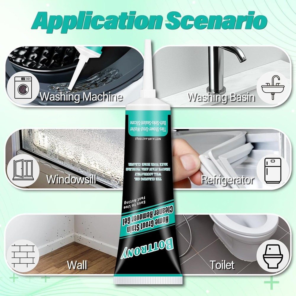RAPID ACTION: Bottony home stain remover gel offers the perfect solution for stubborn stains. Simply apply the magical cleaner gel and wait 3-6hours to witness it effortlessly eliminate black stains from every nook and cranny of your home, without the need for strenuous scrubbing or sanding EASY TO USE: Squeeze home stain cleaner gel to the place where the black stain gather as required, apply it evenly with a red applicator, and then wait 3-6 hours to clean it with clean water or dry cloth WIDELY USED: Bottony home stain cleaner remover gel can be used in refrigerators, front loading washing machine silicone sealants, kitchen sinks, showers, bathroom sinks, tile grout, silicone sealants, sinks, washbasins, and toilet bowls, bathtubs, verandas, ceramic tiles, window frames, and more. This household cleaning gel will fulfill many of your cleaning needs EFFECTIVE CLEANING: Bottony home stain cleaning gel adheres securely to any surface, even on vertical and inclined surfaces, without dripping. This black stain cleaner for washing machines provides an effective solution for tackling any household cleaning challenge PROTECT HEALTH OF FAMILY: Our home stain cleaner gel can keep your home clean, keep you and your family away from black stain, and protect your and your family's health