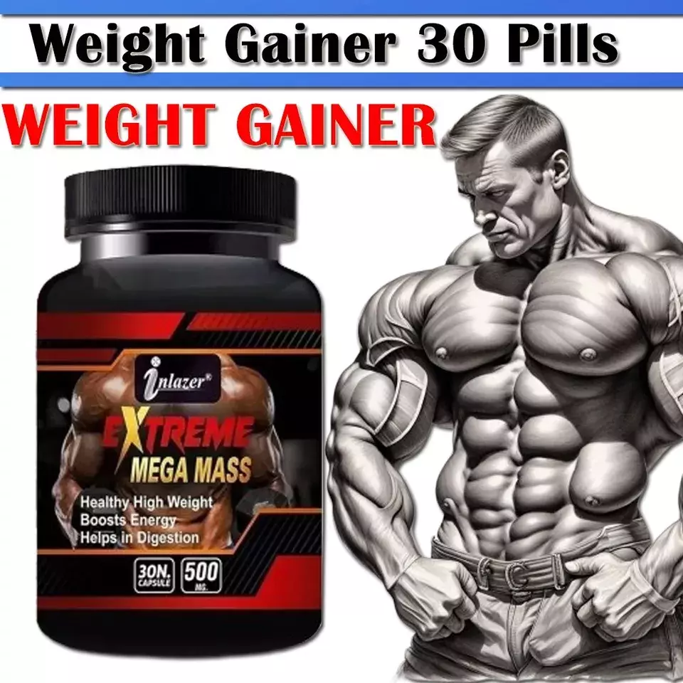 NEW BODY GROW Fast Weight Gain Pills Muscle Gainer WEGHT GAIN 30 CAPSULES (PACK OF 1) Note: This Product is designed to deliver optimal results, offering high-quality performance and satisfaction. Please note that individual experiences and outcomes may vary based on personal use, preferences, and unique circumstances. For best results, we recommend following the provided guidelines and ensuring the product is used as intended. Product result may vary for every individual. Inlazer Extreme Mass Builder Daily Muscle Builder & Performance Enhancer - Muscle Building Supplement for Muscular Strength & Growth - 30 Veggie Pills About This Product Amplifies Gym Efforts: Inlazer Extreme Mass Pills enhances your training, helping maximize muscular gains when combined with effective workouts and nutrition. Fuel Your Cells: Inlazer stimulates ATP production, improving athletic performance, strength, and lean muscle gains. Achieve Fitness Goals: Support muscle-building and absorption support, aiding in a stronger, leaner physique. Premium Weight Gainer: Specially formulated for athletes to boost protein, carbohydrate, and calorie intake for increased size and strength. Superior Formula: Inlazer 100% Mass Gainer contains high-quality protein, mass-producing calories, and creatine monohydrate for faster muscle and strength gains. High-Quality Manufacturing: Produced in a cGMP-certified facility with no harsh chemicals, fillers, or artificial dyes