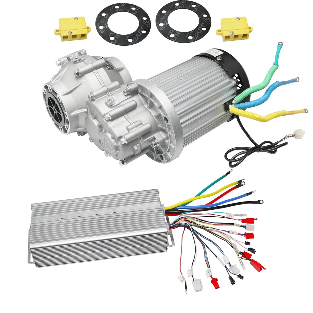 Brand New The Powerful 60v 2500w Unite motor brushless motor with differential gear box for Electric Golf Cart, ATV, Buggy, Quad, Car, Vehicles, Go Kart etc. Rated Speed: 5000RPM Max Speed: 6000RPM Rated Voltage: 60V Rated Power: 2500W Rated Current: 63A Gear Ratio: 12:1 Max Torque: 400N.m Shaft Spline: 6 Teeth Max Load: 1500lbs Protection grade: IP33 Insulation grade: F Weight of the motor: 36.8lbs Controller: 36 Tubes Limited Current: 110A Please check the size specs before purchase Package includes 1x 60v 2500w brushless motor with differential gearbox 1x 60v 2500w controller inkfrog terapeak
