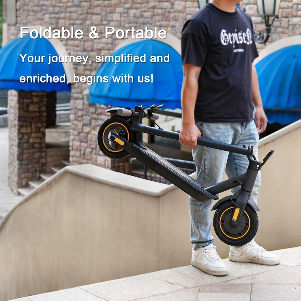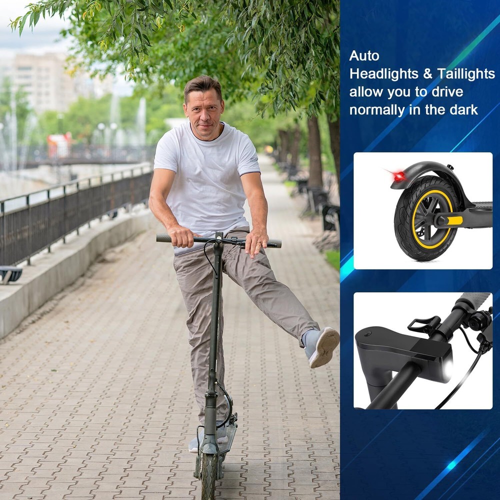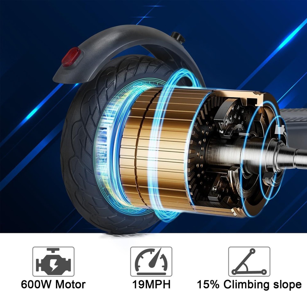 Electric Scooter 10" Solid Tires 600W Peak Motor Up to 20Miles Range and 19Mph Speed for Adults - Portable Folding Commuting Scooter with Double Braking System and App ✔️Powerful Motor & Long Battery Life: The Upgraded 600W electric brush-less motor allows for speeds up to 19mph. High capacity battery with a Max travel range of up to 20 miles under specific conditions, and max load of 220 lbs. ✔️Portable&Folding Design: One-step folding system for easy portability. 1PLUS adult electric scooter can be folded with ease in mere 3 seconds,you can carry it on public transportation, store it in your car and any destination you desire effortlessly ✔️Upgrade Performance: 1PLUS scooter for adults of front and rear wheel equipped with 10-inch solid tires are designed to make riding more convenient &less hassle,provide max comfort, even on rough surfaces or speed bumps. The Solid tire of scooters does not require inflation, repair, maintenance. ✔️Innovative & Superior Technology: With the ultra-bright LED display, blue-tooth capabilities, cruise control, select riding modes and smart mobile app connectivity for additional security.And double braking system features a disc braking and eABS regenerative anti-lock braking. Special Feature Dual Braking System Weight Limit 220 Pounds Product Dimensions 42"L x 5.9"W x 20"H