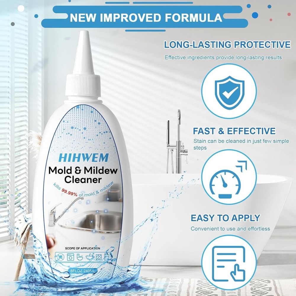Ready-to-Use Powerful Concentrated Gel Formula -- The gel adheres to any surface without flowing down, ensuring long-lasting coverage. Active ingredients are non-volatile, and the gel has a low odor compared to ordinary sprays. Fast Acting & Effective -- The gel penetrates deep into stains for rapid decomposition and long-lasting protection. Simple to use -- Just apply the gel evenly in need of cleaning place,after holding 3-10 hours,rinse with water or wipe with a towel,without scrubbing and sanding. Wide Range Of Use-- Suitable for various surfaces, household cleaner gel can be used in washing machine seals, refrigerator silicone seals, kitchen sinks, wall surfaces, tile grout caulk, toilets, washbasins, bathtubs, showers, window frames, and more. It Works! Free Your Home from Unsightly Stains - Experience Effective Stain Removal!