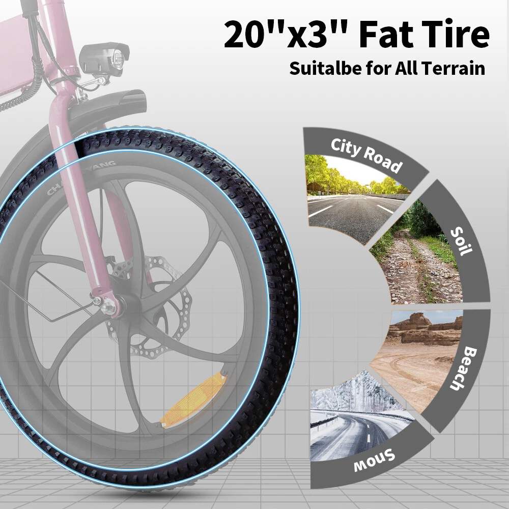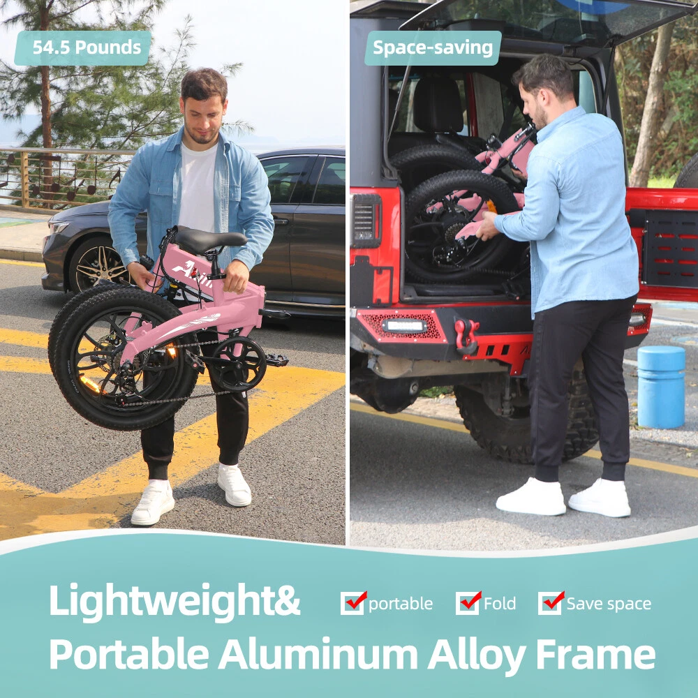 $ 300.9420 Inch Fat Tire Folding E-Bike for Adults 850W 48V 10.3Ah Battery