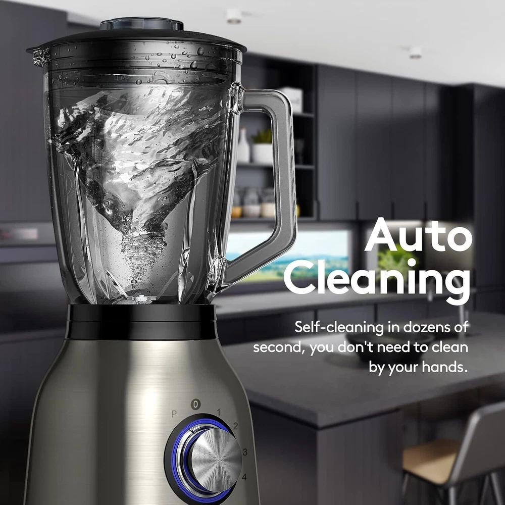 Color Stainless steel Special Feature Pre-Programmed Capacity 1.48 Liters Product Dimensions 16.75"D x 8.11"W x 7.91"H Material Stainless Steel, Glass Wattage 1000 watts Item Weight 1.42 Kilograms Is Dishwasher Safe Yes About this item 【MORE POWERFUL MOTOR】The Anthter smoothie maker blender working faster and smoother for the 950W power. From smooth blending to powerful ice crushing, the four speed functions (low, hi, low pulse, hi pulse) can handle any job with ease from creamy smoothies to icy drinks and more. 【Stainless User-friendly Configuration】 German Standard Stainless Base allows you to complete any blend and still brand new after using for years. Anti-slip feet design reduce slip effectively. 【4-Tip QuadPro Blade Technology】 The 4 blades in stainless steel break cell walls of food easily, releasing more nutrition in seconds. This one blender acts as a juicer, nuts and coffee grinder, and ice smoothies machine for multiple using. 【1.5L PerfectPour Glass Jar】 - The thick, sturdy 50Oz glass jar has a classic feel with advanced performance, and the spout is molded for easy pouring. Easy To Clean】The BPA-Free glass jar's self-cleaning function allows you to clean after use simple and conveniently. Place it on the blender and on medium speed blend it for a minute. just turn the button to the "P" position after adding warm water and a drop of dish soap in the pitcher, the machine can clean itself. Product information Color Stainless steel Special Feature Pre-Programmed Capacity 1.48 Liters Product Dimensions 16.75"D x 8.11"W x 7.91"H Included Components 50 Oz Glass Jar, German Standard Stainless Base Style Modern Recommended Uses For Product Blend,Blending,Crush,Ice Power Source Corded Electric Number of Speeds 4 Voltage 220 Volts Controls Type Touch Material Type Free BPA Free Blade Material Stainless Steel Item Weight 3.12 pounds Item model number CY-208
